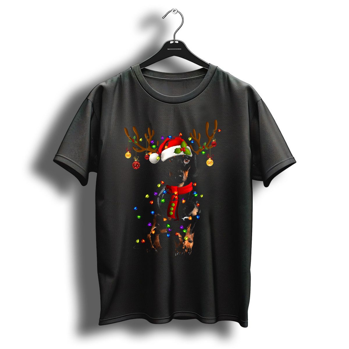 Celebrate the festive season with our delightful Dachshund Christmas Reindeer T-shirt, featuring an adorable design of a dachshund donning a Santa hat and surrounded by twinkling lights. Perfect for dog lovers and holiday enthusiasts alike, this shirt brings joy and cheer to any casual gathering, themed event, or daily wear during the holidays. Crafted with love and printed in the USA, this fan-made design is a must-have for spreading holiday spirit!
