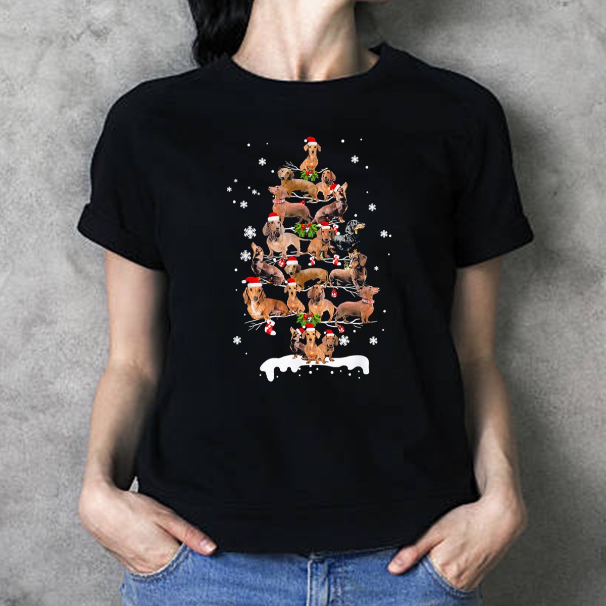 Be the first to review “Dachshund Christmas Tree Santa Hats Snowflakes Holiday Dogs T Shirt”