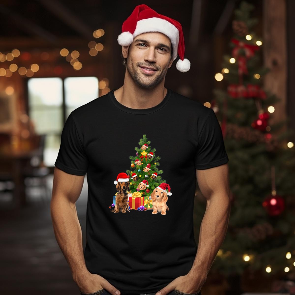 Celebrate the festive season in style with our adorable Dachshund Christmas Tree T-shirt! Perfect for dog lovers and holiday enthusiasts alike, this fan-made design showcases charming puppies adorned with Santa hats surrounded by festive gifts. Ideal for casual wear, themed events, or simply spreading Christmas cheer, this shirt is sure to become a beloved addition to your seasonal wardrobe. Made with care and printed in the USA, it combines comfort and holiday spirit effortlessly.