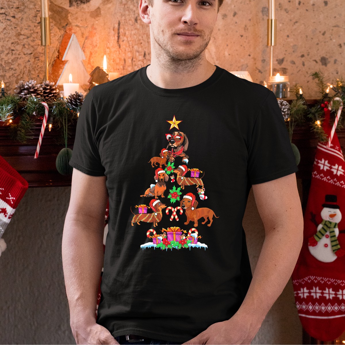 Celebrate the festive season with our Dachshund Christmas Tree T-Shirt, a perfect blend of holiday cheer and canine charm! This fan-made design features adorable dachshunds adorned with Santa hats and surrounded by presents, making it an ideal choice for dog lovers and festive gatherings alike. Whether you’re attending a holiday party, participating in themed events, or simply enjoying everyday casual wear, this shirt is sure to bring a smile to everyone you meet. Made with comfort in mind, it’s perfect for all-season wear and is proudly printed in the USA.