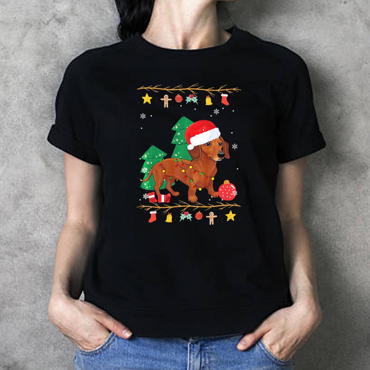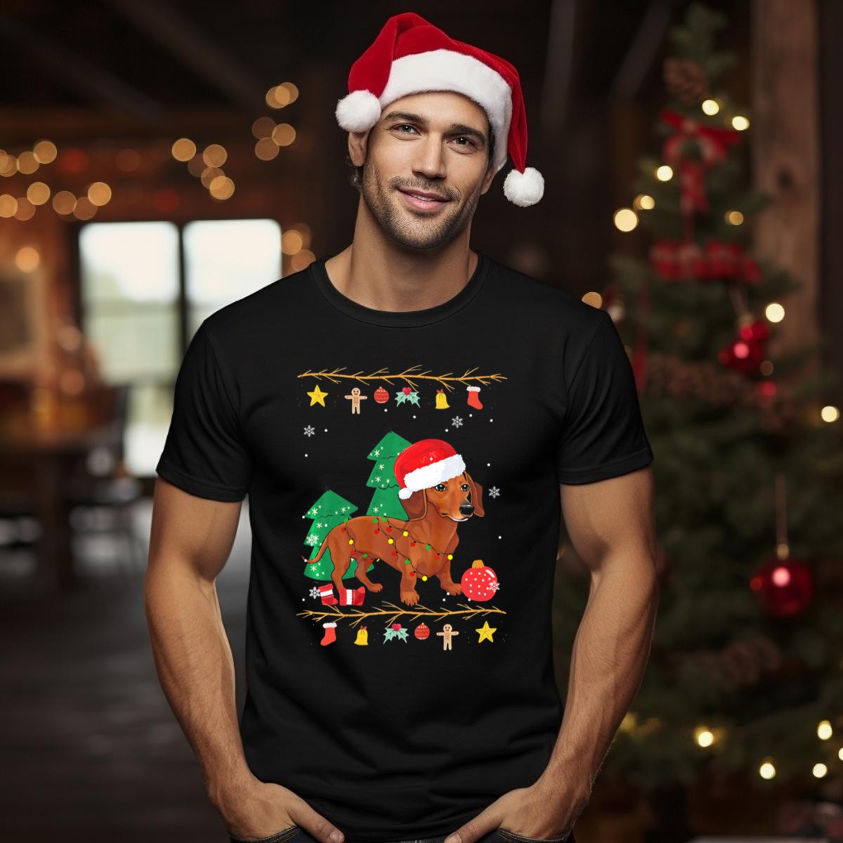 Celebrate the holiday season in style with our Dachshund Festive Christmas Lights T-Shirt! Perfect for dog lovers and festive spirits alike, this fun and playful design showcases a delightful dachshund adorned with a Santa hat and surrounded by colorful holiday decorations. Whether you’re attending a casual get-together, a themed event, or just want to spread some cheer while out and about, this shirt is your go-to choice for all-season festivities. Made with care in the USA, it’s a unique fan-made piece that brings joy and warmth to your wardrobe.