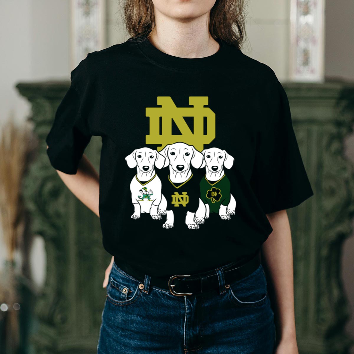 Show your love for the Notre Dame Fighting Irish and your favorite four-legged friend with our Dachshund Notre Dame Fighting Irish T-Shirt! This unique, fan-made design is perfect for dog lovers and sports enthusiasts alike, making it an ideal choice for casual outings, themed events, or simply lounging at home. Printed in the USA, this shirt combines comfort and style, allowing you to cheer on your team with your beloved dachshund in mind.