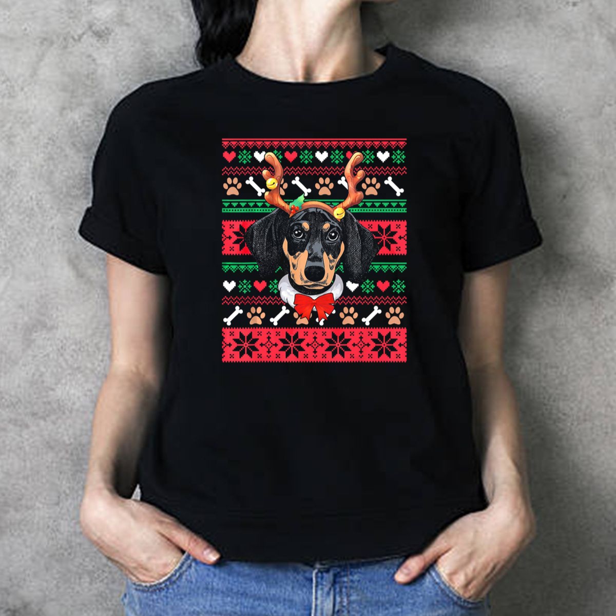 Dachshund Reindeer Ugly Christmas Dog T-Shirt