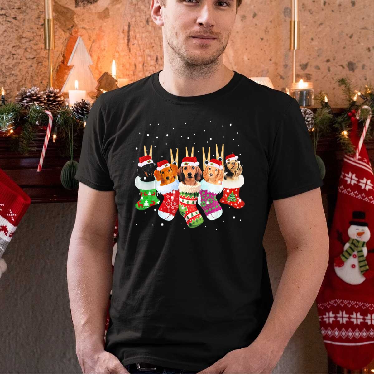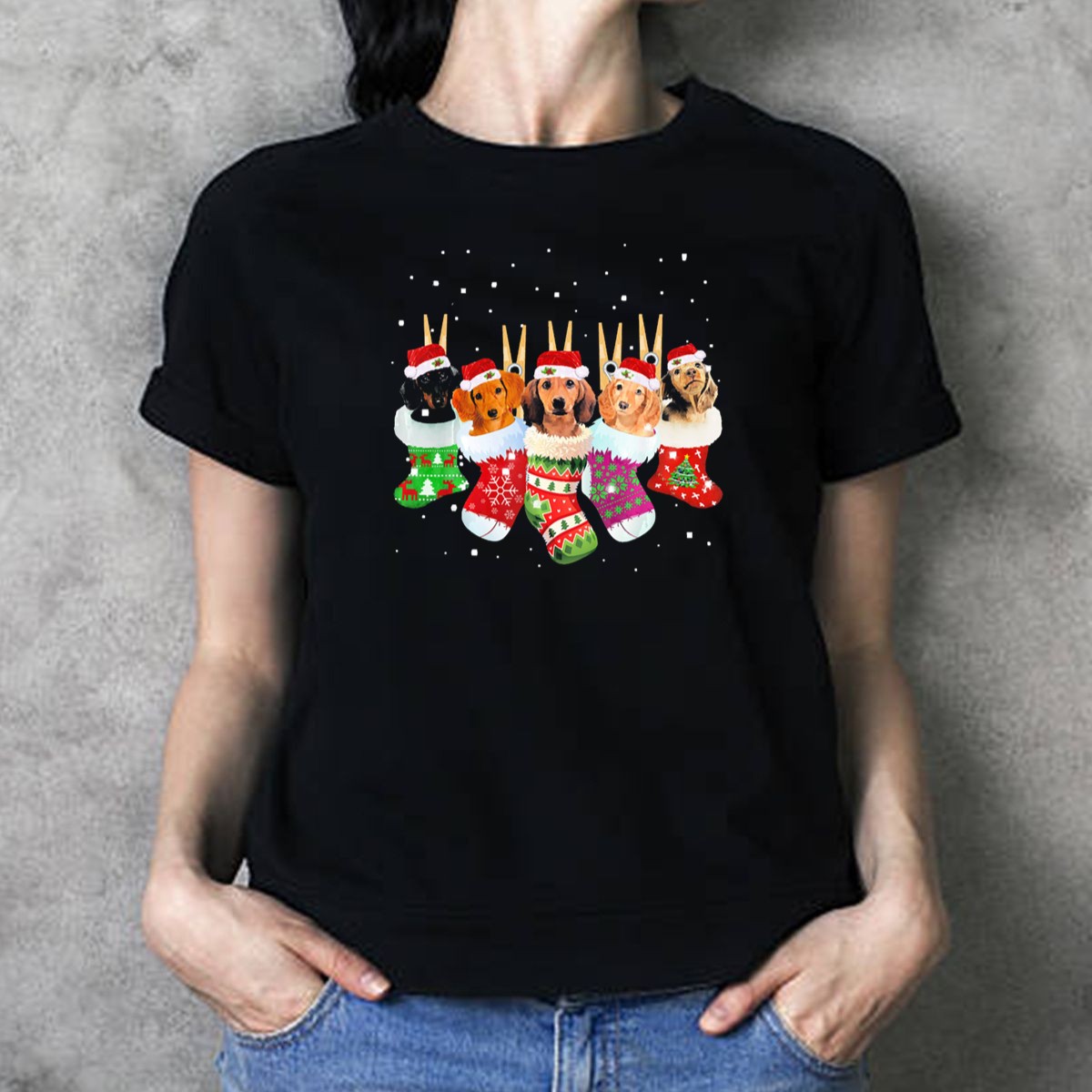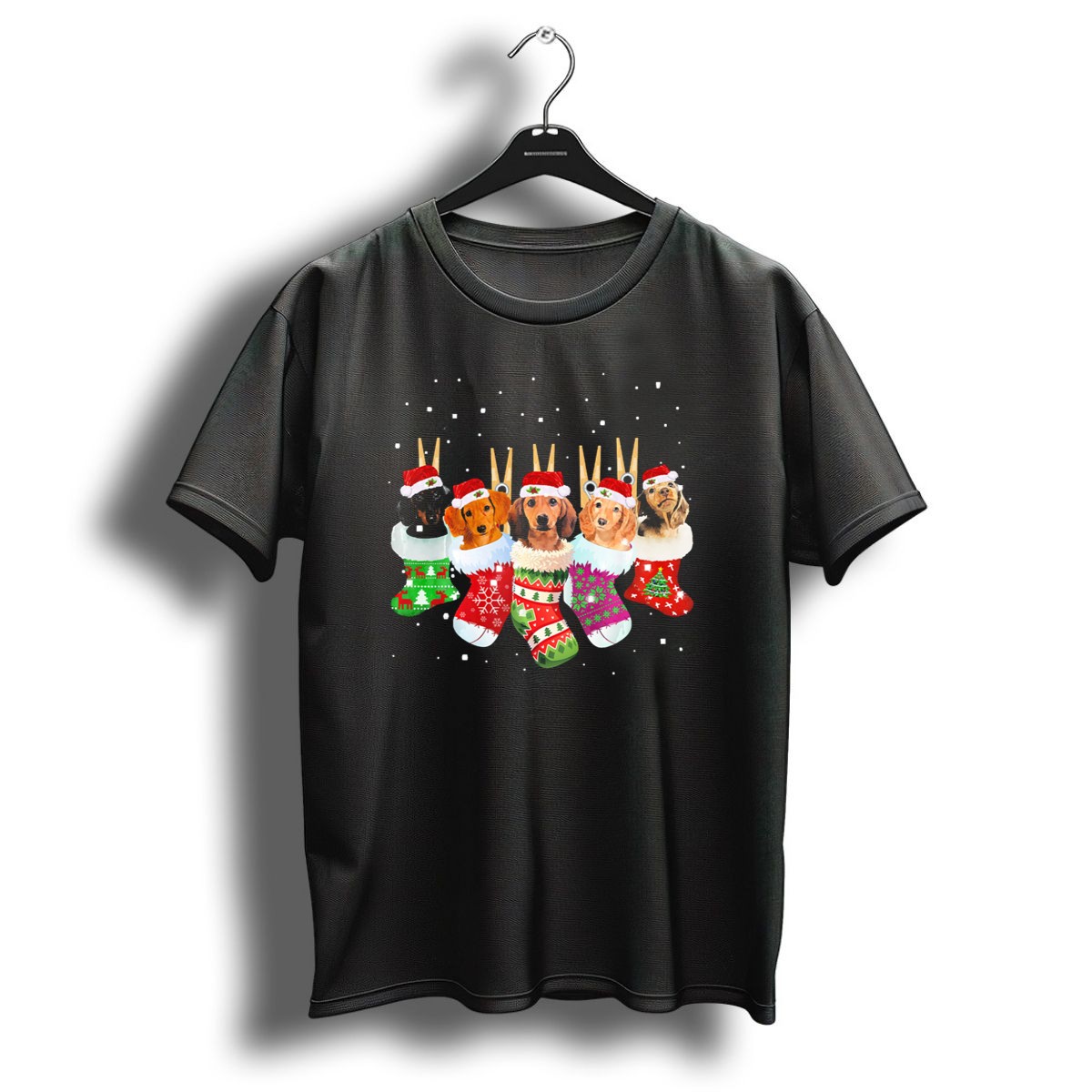 Celebrate the festive season in style with our Dachshunds In Santa Hats Inside Colorful Christmas Socks T-Shirt! Perfect for dog lovers and holiday enthusiasts alike, this whimsical design features adorable dachshunds decked out in Santa hats, nestled inside vibrant Christmas socks. Ideal for casual wear, themed events, or just spreading holiday cheer, this shirt combines comfort with a fun and unique flair that will turn heads at any gathering!