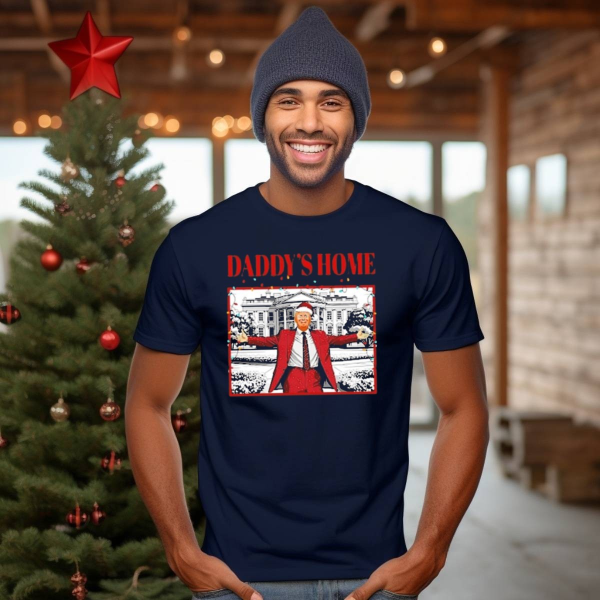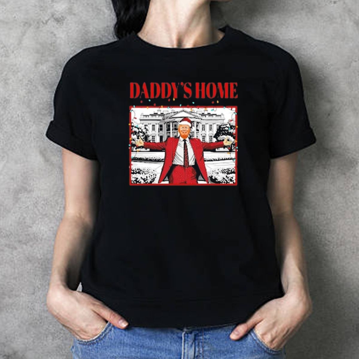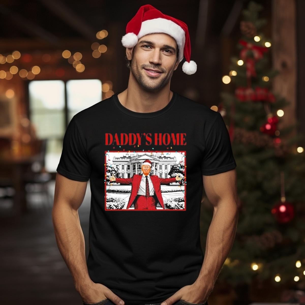 Get ready to celebrate the holiday season in style with our “Daddy’s Home For Christmas” Santa Funny Trump Xmas Lights T-Shirt! Perfect for dads who love to spread holiday cheer, this shirt is ideal for casual family gatherings, themed events, or simply lounging around during the festive season. The playful design adds a humorous touch to your Christmas wardrobe, making it a standout piece that everyone will love. Plus, it’s fan-made and printed in the USA, ensuring you’re wearing a unique piece of holiday spirit.