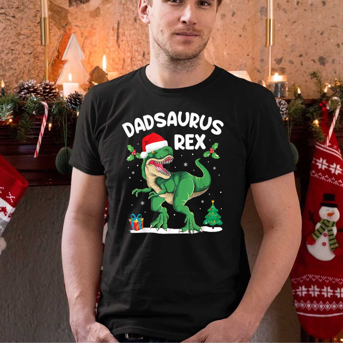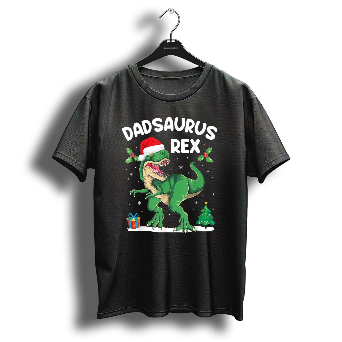 Get ready to spread some holiday cheer with our Dadsaurus Rex Santa Hat Christmas Tree Snowflakes T-Shirt, perfect for fun-loving dads who want to add a playful twist to their festive wardrobe. Made for casual wear and themed events, this shirt is an excellent choice for family gatherings, holiday parties, or just lounging around at home. Its unique fan-made design, printed in the USA, showcases a whimsical Dadsaurus Rex adorned with a Santa hat, bringing a smile to everyone’s face this holiday season.