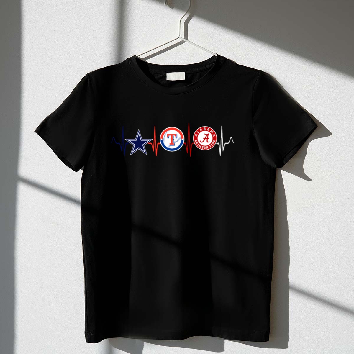 Dallas Cowboys Texas Rangers Alabama Crimson Tide Heartbeat Act T Shirt