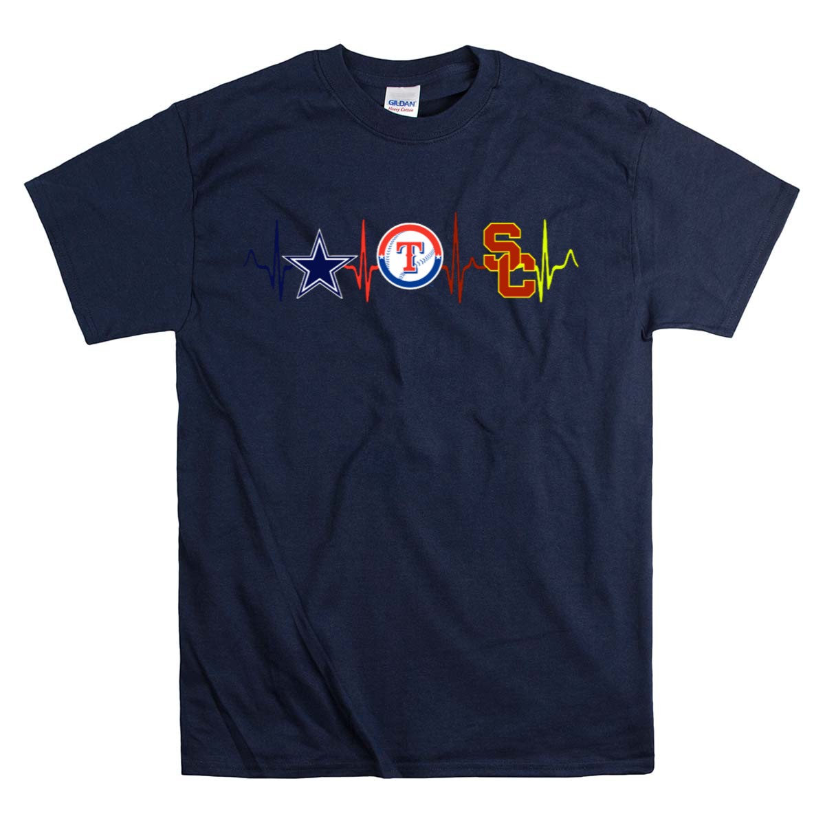 Show your unwavering support for your favorite teams with our Dallas Cowboys, Texas Rangers, and USC Trojans Heartbeat Electrocardiogram T-Shirt! This fan-made design captures the spirit of sportsmanship in a unique way, making it perfect for die-hard fans and casual wear alike. Whether you’re cheering from the stands, hanging out with friends, or attending themed events, this classic fit T-shirt ensures comfort and style for any occasion.