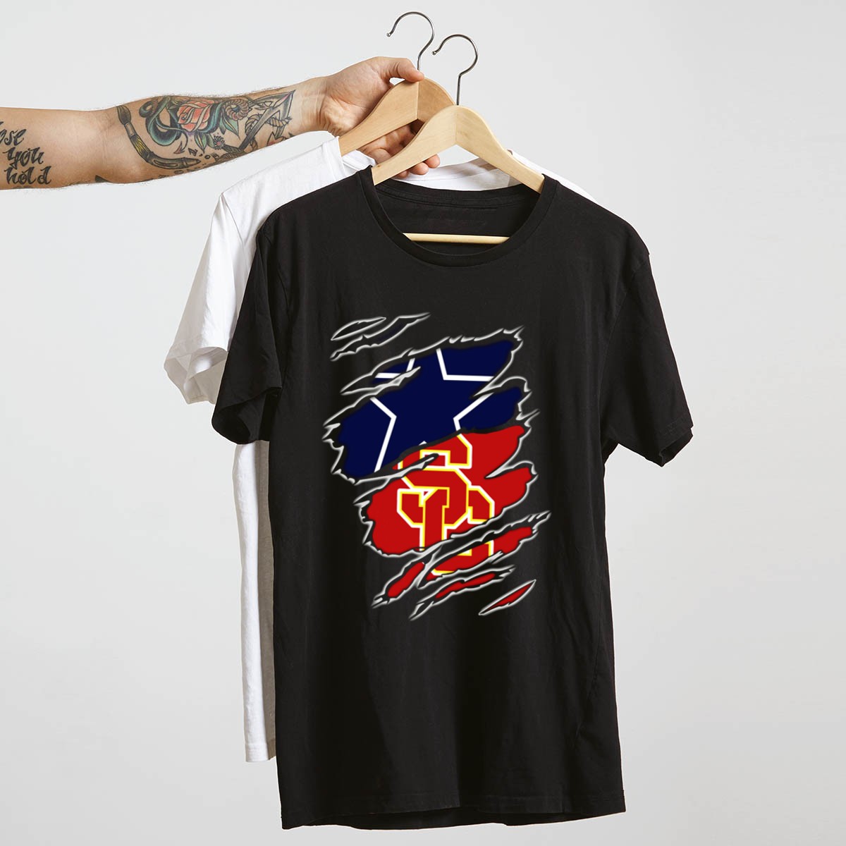 Show your team spirit with our Dallas Cowboys USC Trojans T-Shirt, designed for true fans who love to represent their favorite teams in style. Perfect for casual outings, themed events, or just lounging at home, this shirt combines comfort with a striking fan-made design, printed right here in the USA. Whether you’re cheering from the stands or watching the game with friends, this classic tee is a must-have for any dedicated supporter.