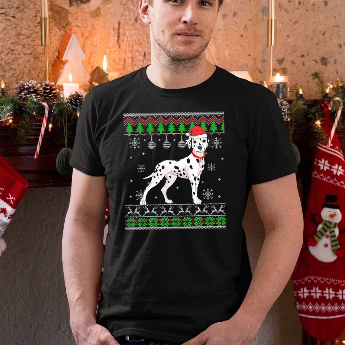 Embrace the festive spirit with our Dalmatian Santa Hat Christmas Snowflakes Trees Reindeer T-Shirt, perfect for dog lovers and holiday enthusiasts alike! This charming design captures the essence of the season, showcasing a playful Dalmatian adorned with a Santa hat amidst a backdrop of snowflakes and cheerful reindeer. Whether you’re attending a holiday party, enjoying a cozy family gathering, or simply spreading cheer in your daily routine, this shirt adds a delightful touch to any casual outfit.