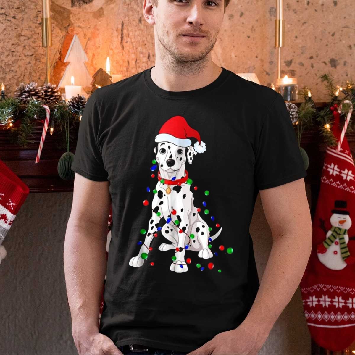 Dalmatian With Santa Hat And Christmas Lights T Shirt