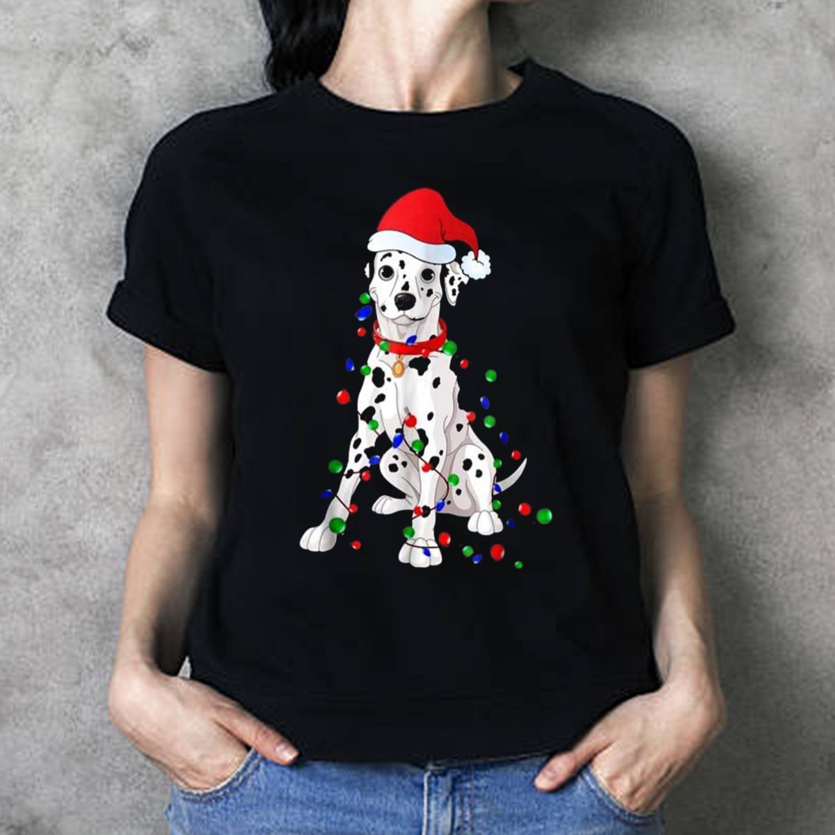 Celebrate the festive season with our charming Dalmatian With Santa Hat And Christmas Lights T-Shirt! Perfect for dog lovers and holiday enthusiasts alike, this delightful graphic tee adds a playful touch to your casual wardrobe. Whether you’re attending themed events, holiday parties, or just enjoying a cozy day at home, this fan-made design, printed right here in the USA, is sure to spread joy and cheer all season long.