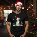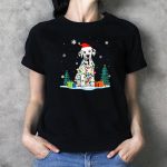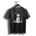 Be the first to review “Dalmatian Wrapped In Christmas Lights With Santa Hat And Presents Surrounding Snowy Christmas Trees T Shirt”