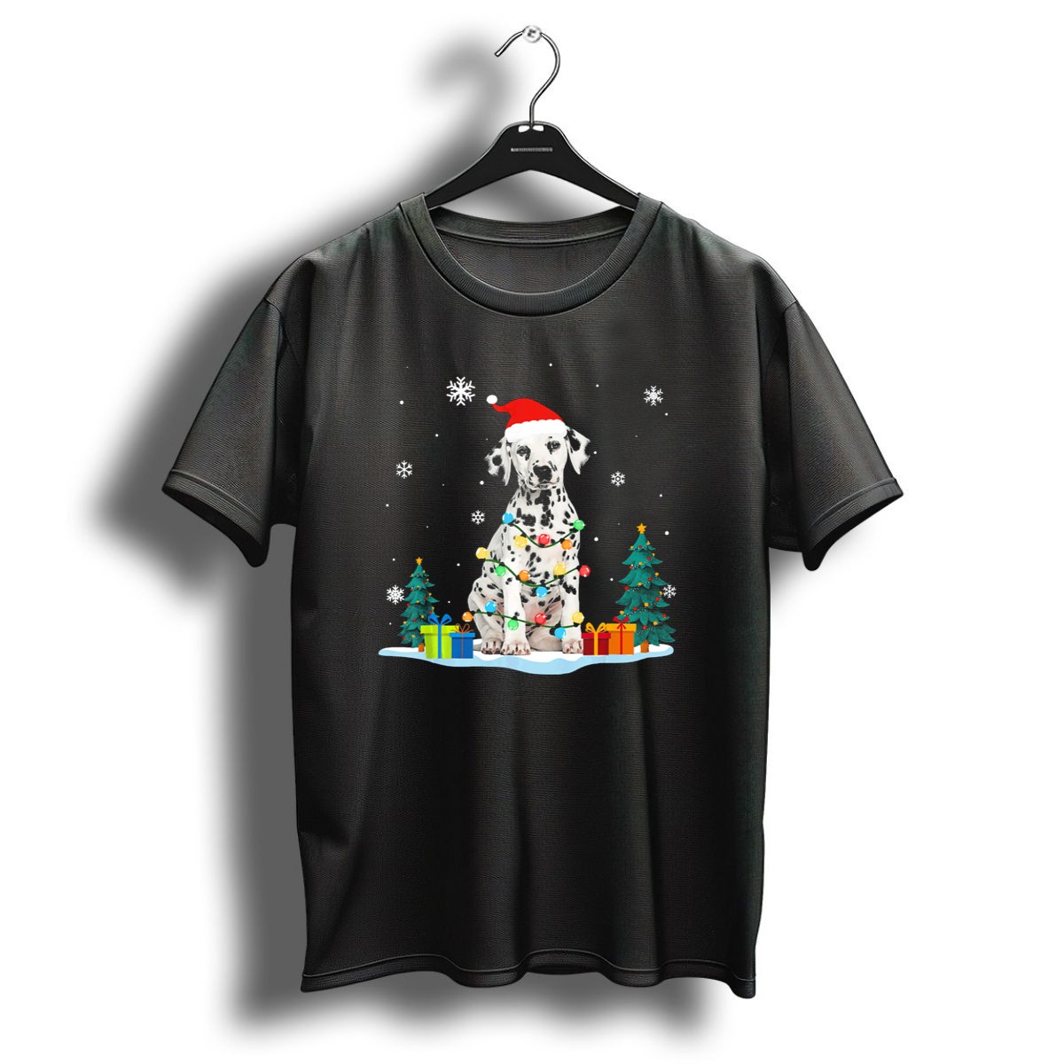 Celebrate the festive season with our whimsical Dalmatian Wrapped In Christmas Lights T-Shirt! This playful design features an adorable Dalmatian donning a Santa hat, surrounded by gifts and snowy Christmas trees, making it the perfect choice for dog lovers and holiday enthusiasts alike. Ideal for casual wear, themed events, or simply spreading holiday cheer, this shirt will keep you stylish and comfortable throughout the season.