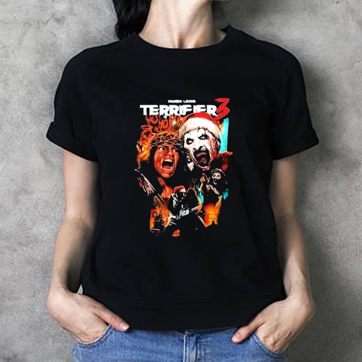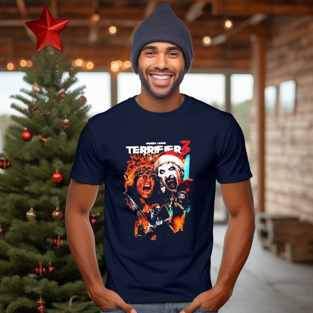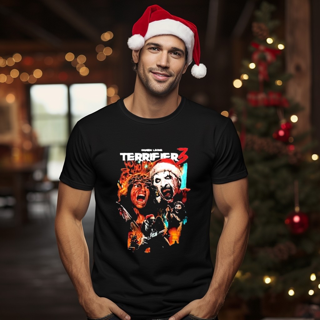 Embrace the chilling spirit of the season with our Damien Leone Terror Threads Terrifier 3 Horror Santa Claus Christmas Nightmare T-Shirt. Perfect for horror fans and those looking to make a statement at themed events or casual outings, this uniquely designed shirt captures the essence of festive fright. Crafted with care in the USA, it’s not just a shirt; it’s a conversation starter that blends holiday cheer with a twist of terror.