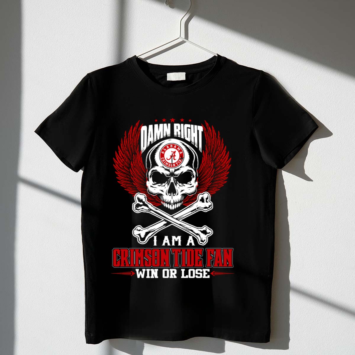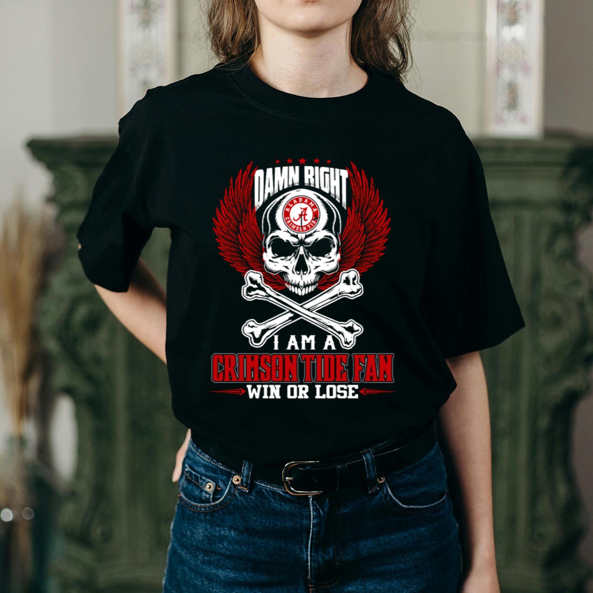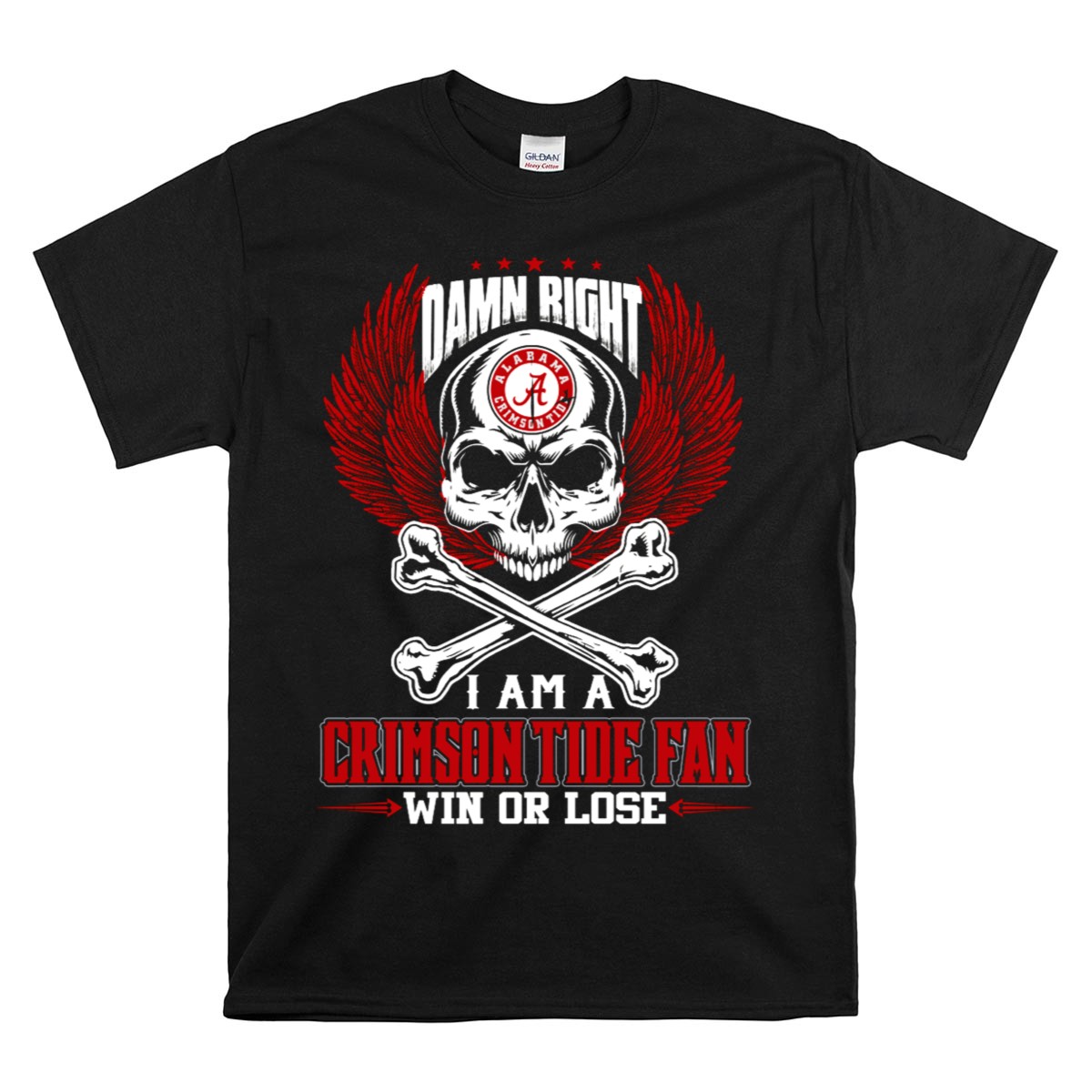 Show your unwavering support for the Alabama Crimson Tide with our “Damn Right I Am A Crimson Tide Fan Win Or Lose” T-shirt! Perfect for die-hard fans and casual supporters alike, this fan-made design is ideal for game days, tailgating parties, or just lounging around. Crafted for comfort and style, this shirt proudly displays your team spirit while keeping you cozy and fashionable.