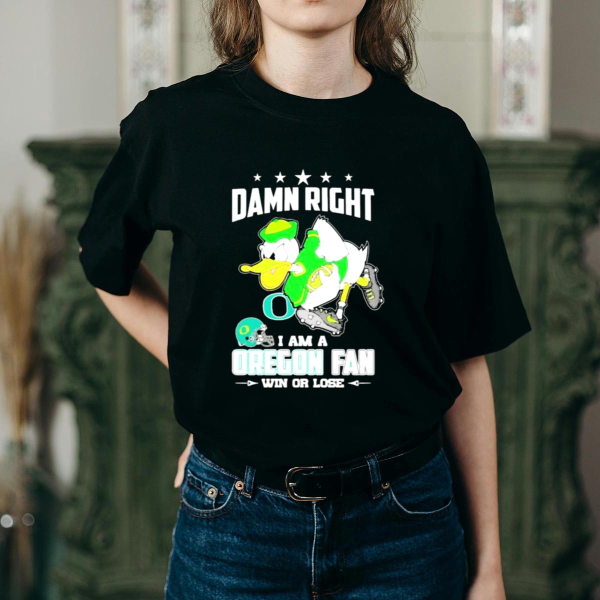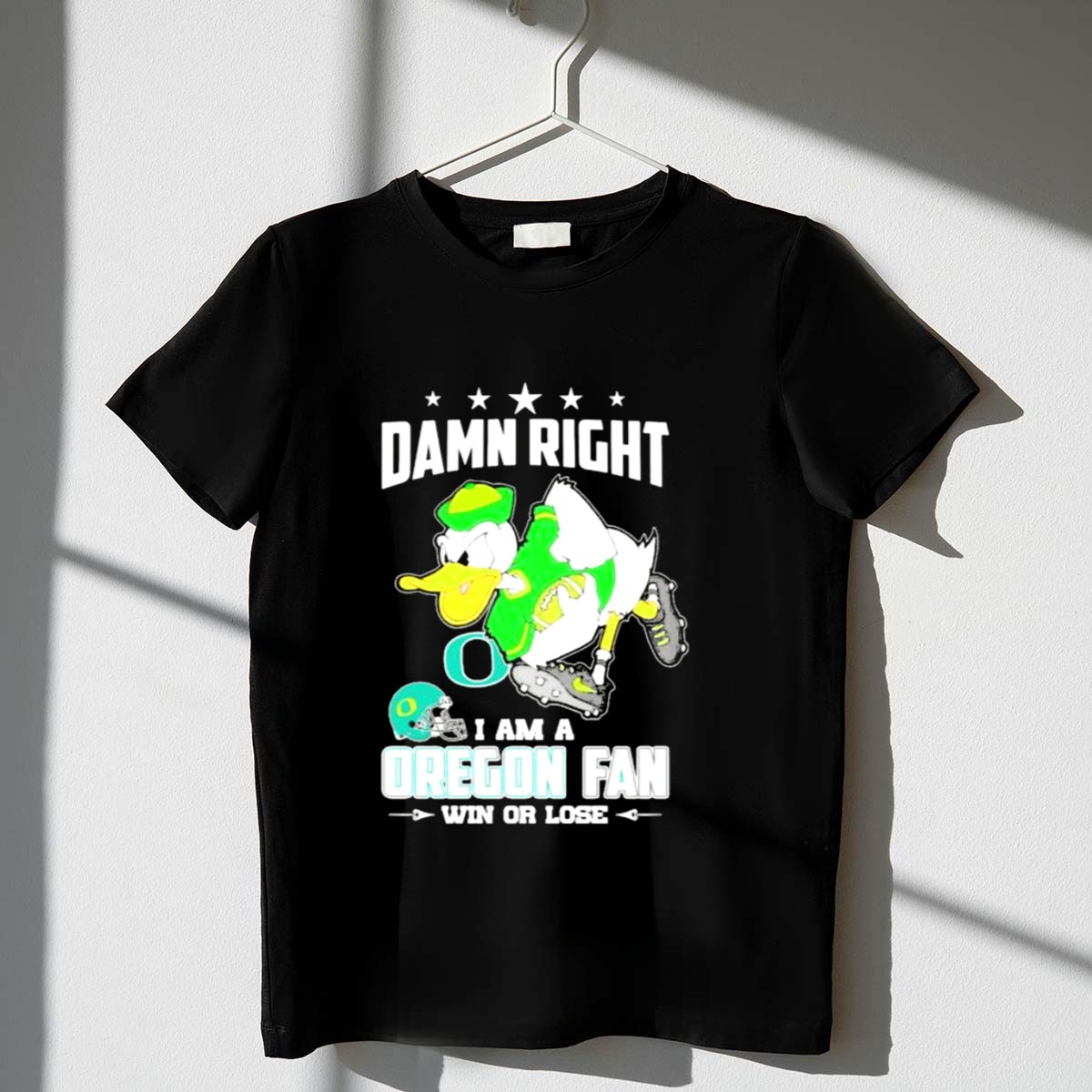 Show your unwavering support for the Oregon Ducks with our “Damn Right I Am A Oregon Ducks Football Fan Win Or Lose” T-shirt. This fan-made design is perfect for die-hard fans ready to cheer on their team, whether it’s game day or just a casual outing. Crafted for comfort and style, it’s an essential addition to any Ducks supporter’s wardrobe, making it ideal for themed events, tailgates, or everyday wear.