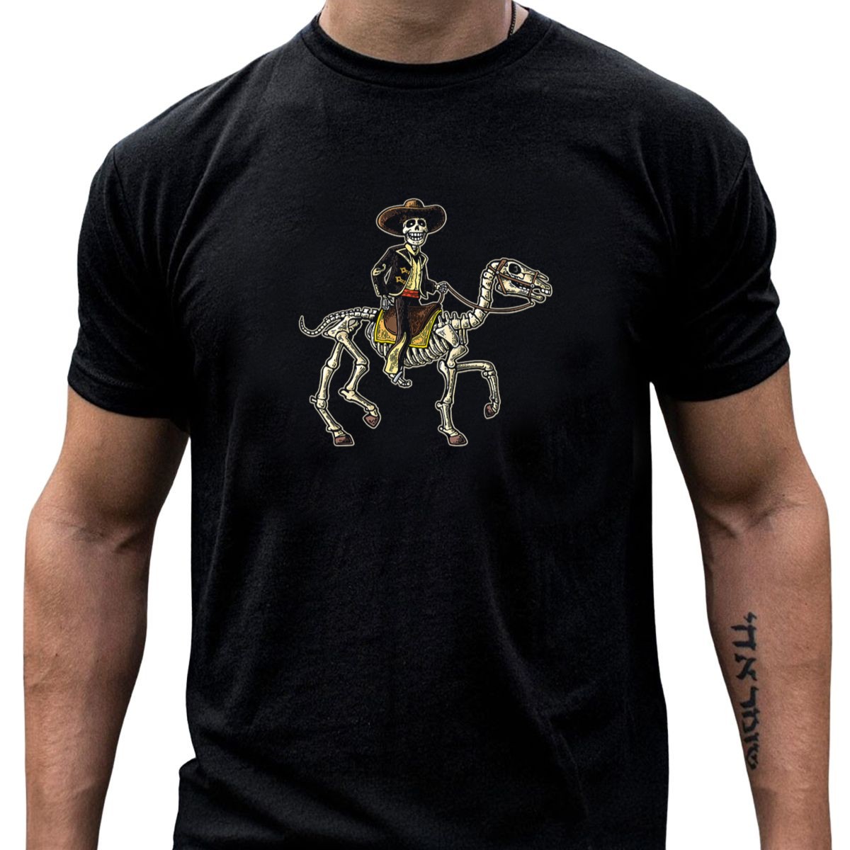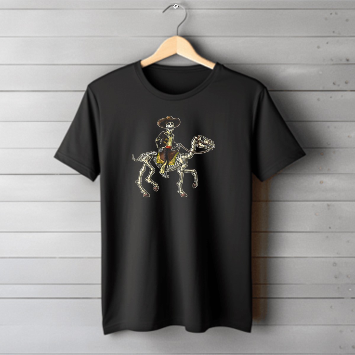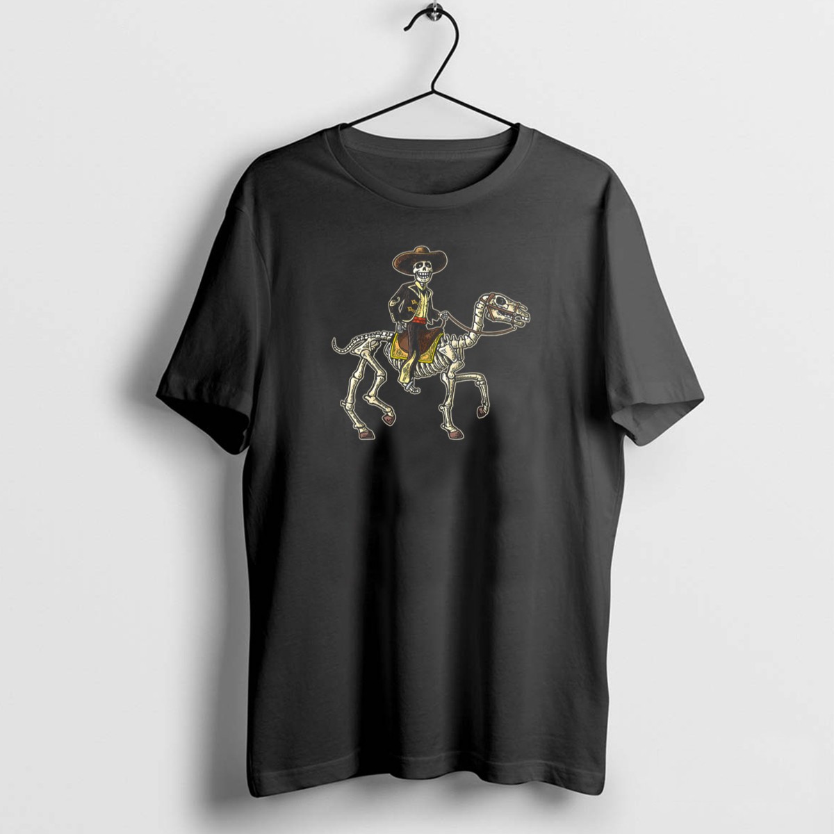 Embrace the spirit of the Day of the Dead with our Skeleton Cowboy on Horseback T-shirt, perfect for those who love to celebrate Halloween in style! This fan-made design captures the essence of festive gatherings, making it an ideal choice for themed events, casual outings, or daily wear. Crafted for comfort and durability, this T-shirt is sure to turn heads and spark conversations wherever you go.