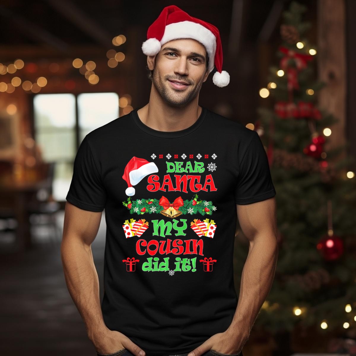 Celebrate the holiday season with our “Dear Santa Christmas My Cousin Did It” T-shirt, perfect for family gatherings, themed events, or just spreading festive cheer! This fan-made design features a playful twist on Christmas traditions, making it a must-have for anyone who loves to add a little humor to their holiday wardrobe. Crafted for comfort and style, this shirt is ideal for all-season wear, ensuring you stay cozy while you share laughs and create memories with loved ones.