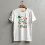 Get into the festive spirit with our “Dear Santa I Can Explain” Christmas Edition T-Shirt, perfect for those who love to celebrate the holiday season with a touch of humor. This fan-made design features a playful Santa hat and arrow graphic, making it an ideal choice for casual wear, themed events, or just lounging around during the holidays. Made with care in the USA, this shirt combines comfort and style, ensuring you stand out at any Christmas gathering.