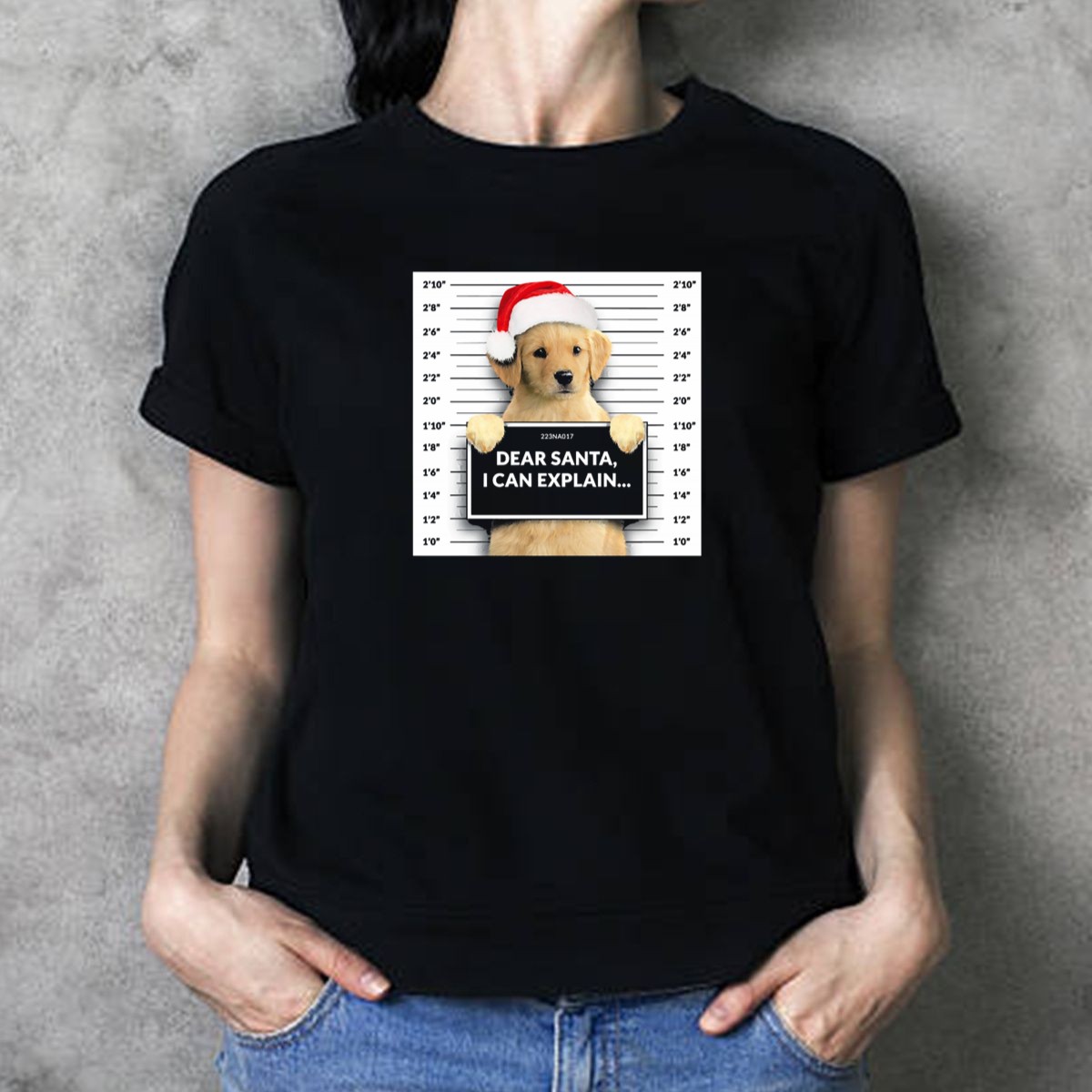 Get into the holiday spirit with our “Dear Santa I Can Explain” T-shirt featuring an adorable Golden Retriever mugshot wearing a Santa hat! Perfect for dog lovers and festive gatherings, this shirt adds a playful twist to your Christmas wardrobe. Crafted for comfort and style, it’s an ideal choice for casual wear, themed events, or simply spreading cheer throughout the season. Made with love in the USA, this fan-made design is sure to be a hit at any holiday celebration!