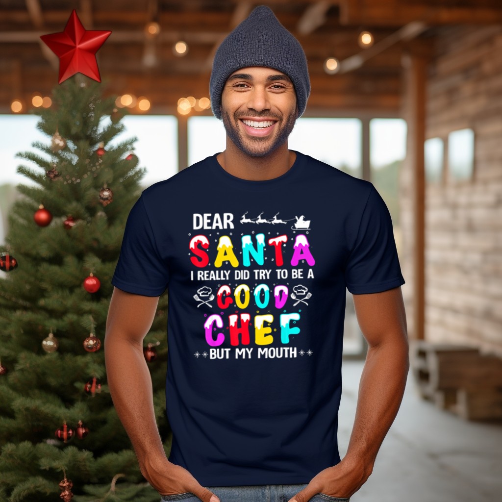 Get into the festive spirit with our “Dear Santa I Really Did Try To Be A Good Chef But My Mouth” T-shirt, perfect for food lovers and holiday enthusiasts alike! This playful design makes it an ideal choice for casual wear, themed events, or just lounging around during the holiday season. Made with a fan-made design printed in the USA, this shirt adds a humorous touch to your Christmas festivities while ensuring you stay comfortable and stylish.