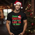 Get into the festive spirit with our “Dear Santa Is It Too Late To Be Good” Christmas T-shirt! This fan-made design is perfect for anyone who loves to celebrate the holiday season with a touch of humor. Made for casual wear, themed events, or simply to bring a smile to your daily attire, this shirt is a delightful choice for holiday gatherings, family photos, or cozy nights at home. Crafted with care and printed in the USA, it’s a unique addition to your all-season wardrobe that spreads joyful cheer wherever you go.