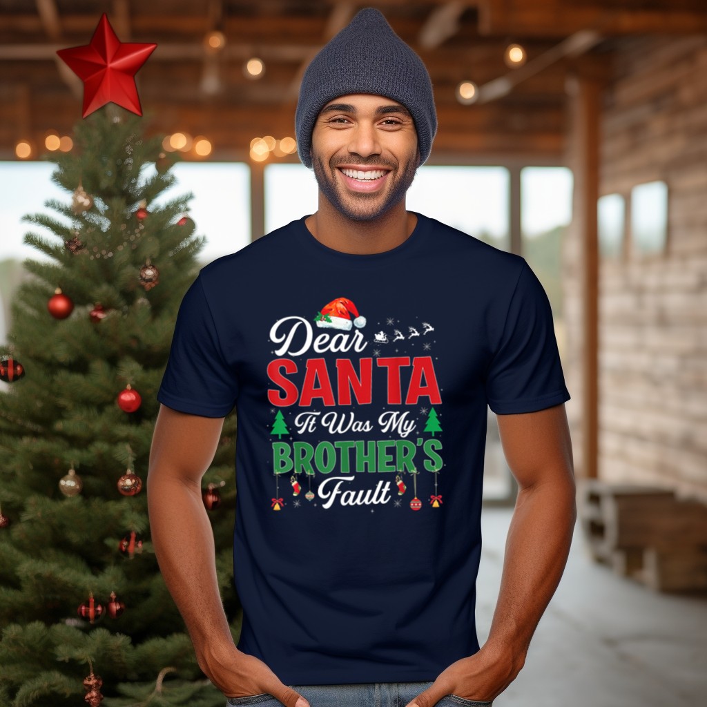Celebrate the holiday spirit with our “Dear Santa It Was My Brother’s Fault” T-shirt, featuring a whimsical design of Santa hats, Christmas trees, sleighs, and reindeer. Perfect for kids and adults alike, this shirt is ideal for family gatherings, themed events, or simply spreading cheer during the festive season. Made with love and printed in the USA, it’s a unique addition to your casual wardrobe that’s sure to spark laughter and joy!