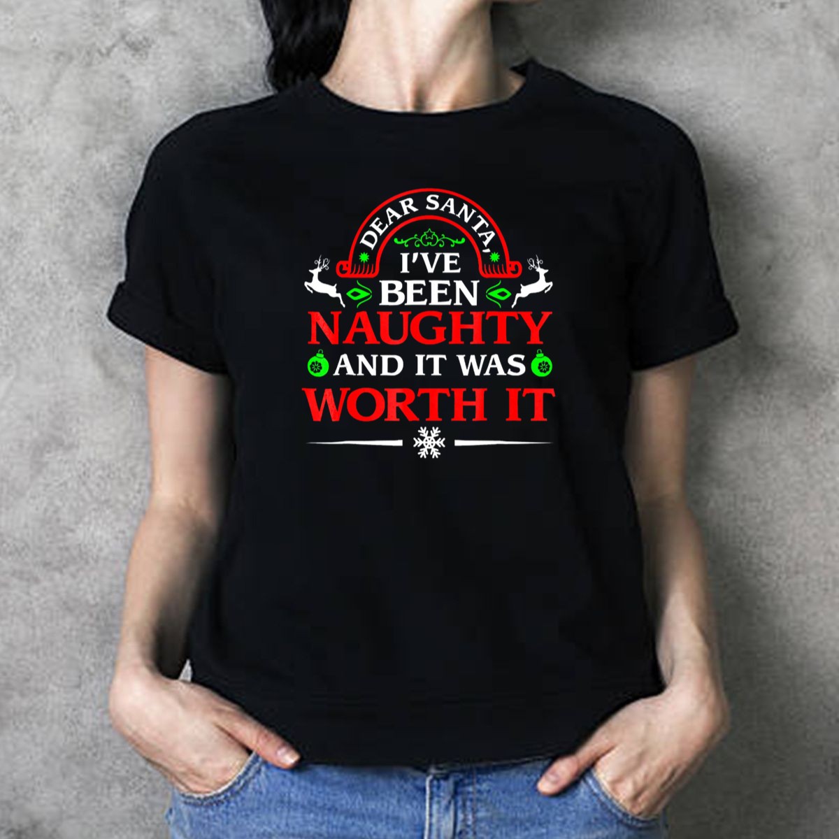 Be the first to review “Dear Santa Ive Been Naughty And It Was Worth It Christmas Reindeer Snowflake Ornaments T Shirt”