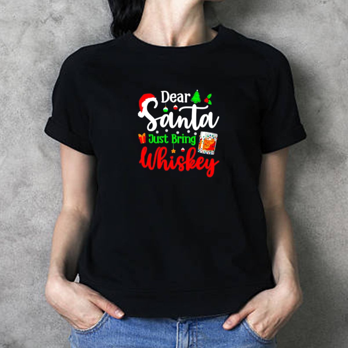 Get into the holiday spirit with our “Dear Santa Just Bring Whiskey” graphic printed T-shirt! Perfect for those who appreciate a little humor with their holiday cheer, this shirt features a playful design that combines festive elements with a love for whiskey. Ideal for casual wear, themed events, or just lounging at home during the festive season, this fan-made shirt is a unique addition to any holiday wardrobe, making it a great gift for friends and family who enjoy a good laugh.