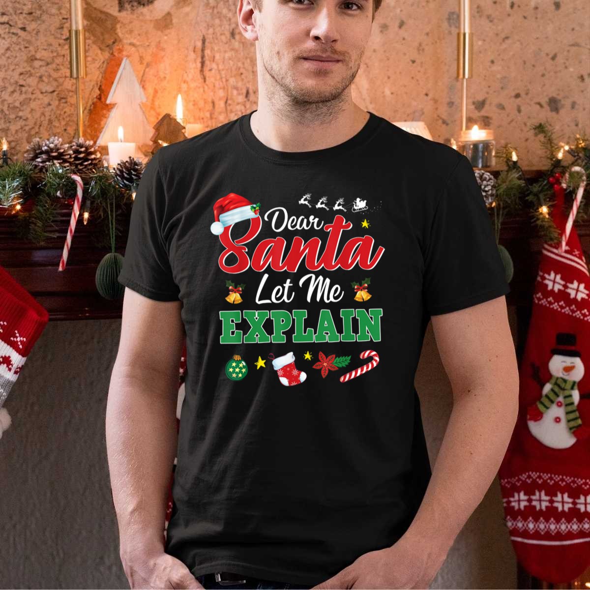 Be the first to review “Dear Santa Let Me Explain Christmas Icons Santa Hat Sleigh Reindeer Candy Cane Stocking Ornaments T Shirt”