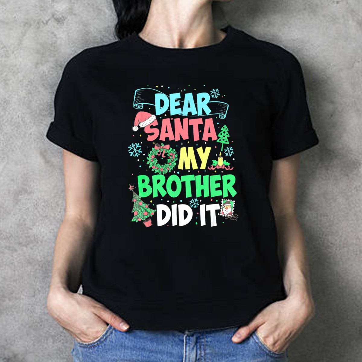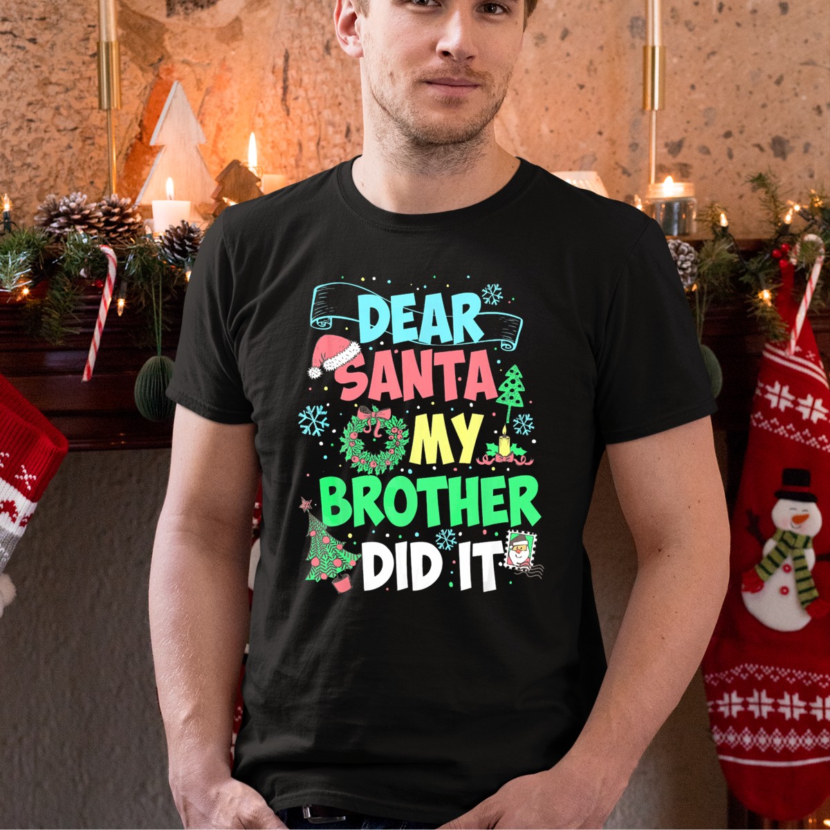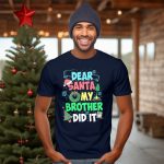 Embrace the holiday spirit with our “Dear Santa My Brother Did It” T-shirt! Perfect for kids who love to add a touch of humor to their Christmas celebrations, this shirt is ideal for themed events, family gatherings, or just everyday casual wear. Made with a fun and engaging fan-made design, printed right here in the USA, this T-shirt is sure to bring smiles and laughter to the festive season.