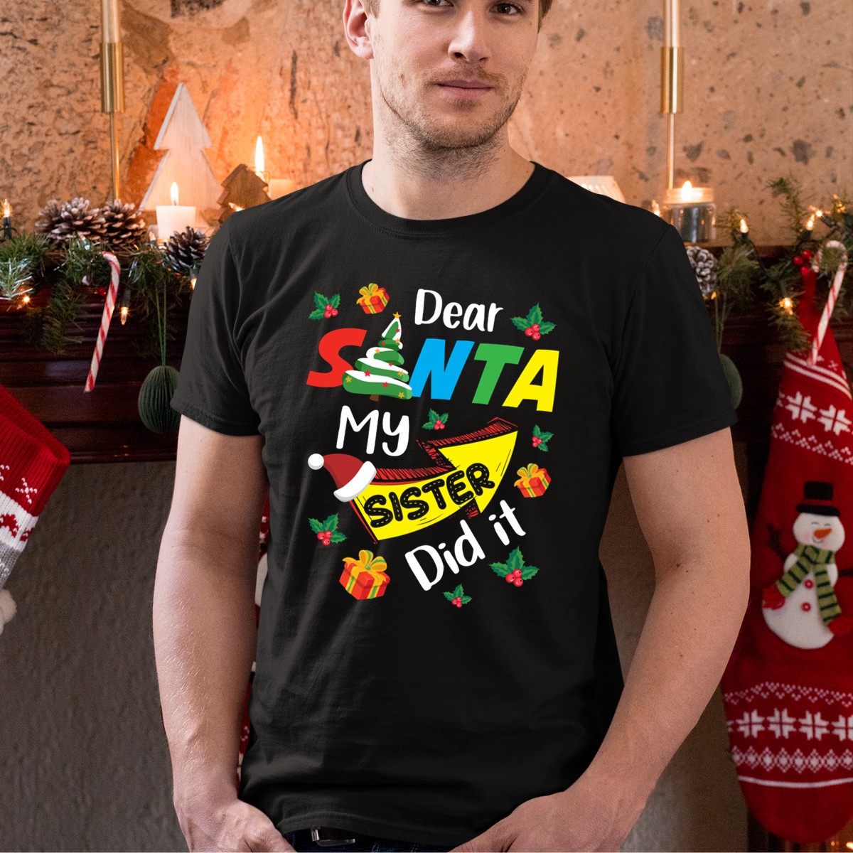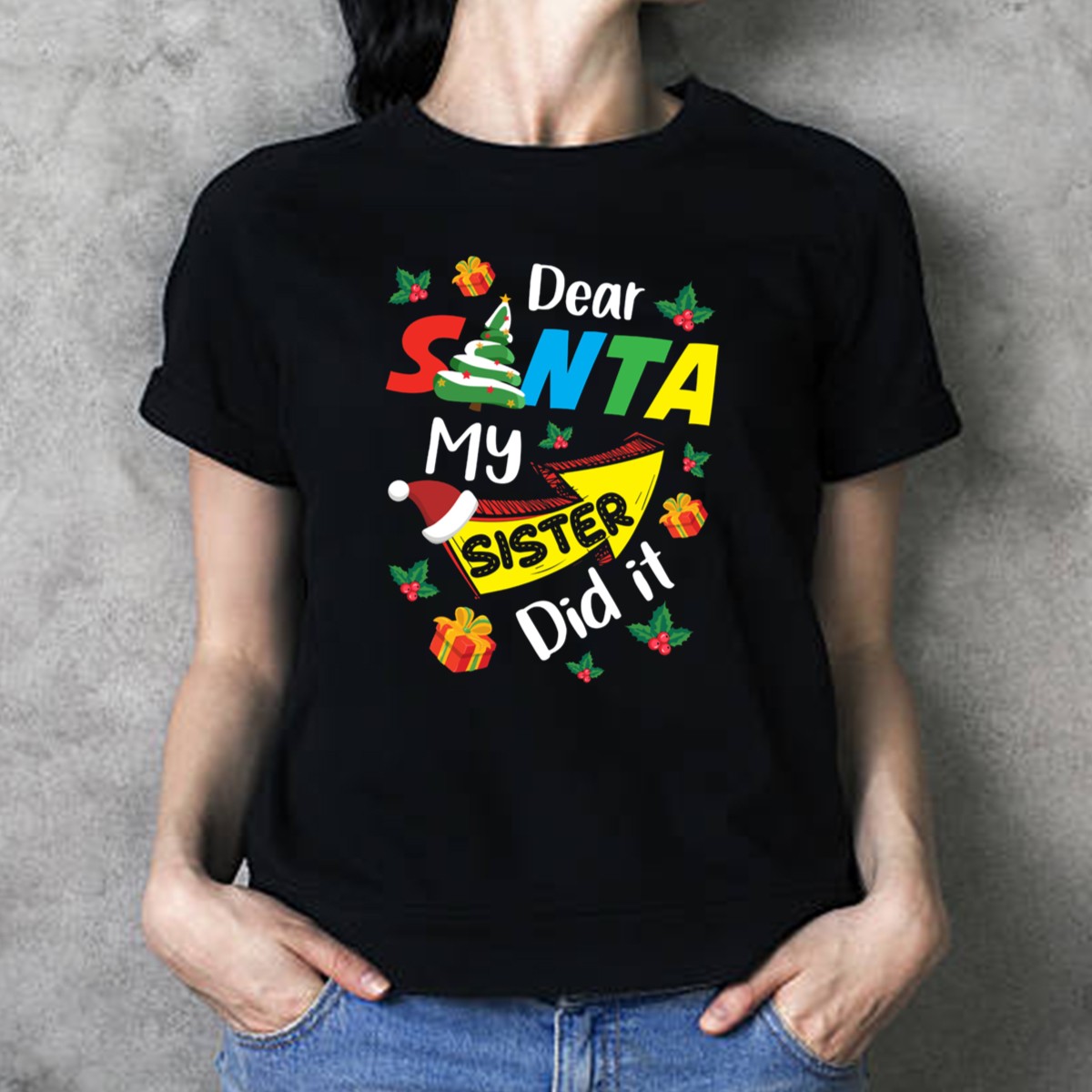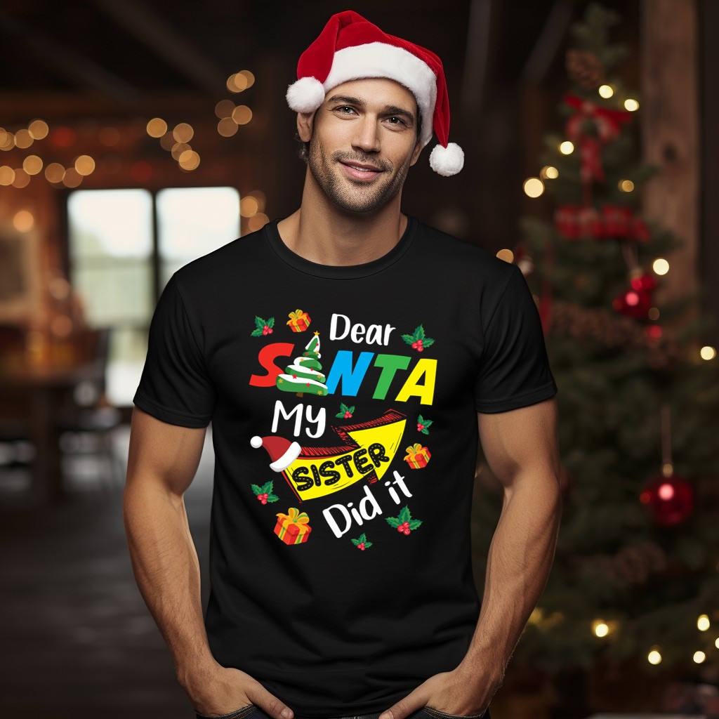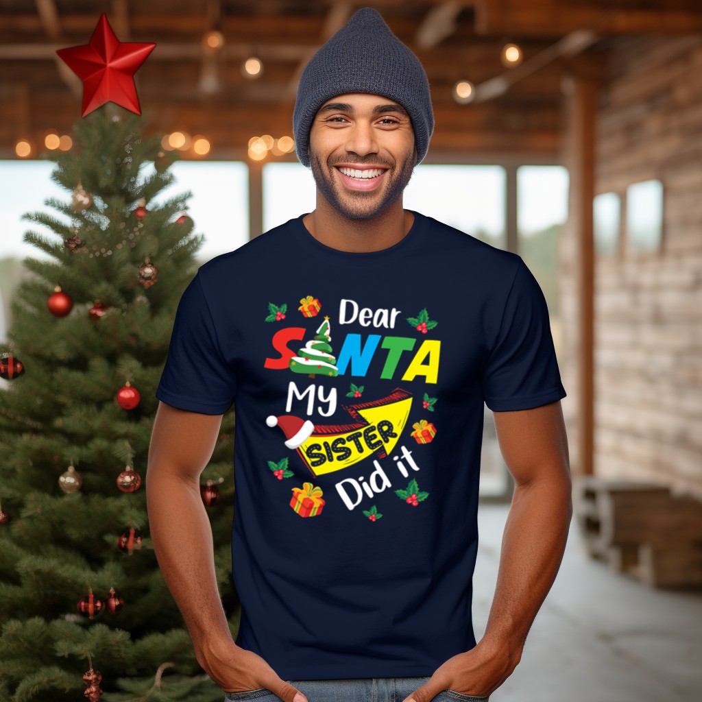 Celebrate the holiday spirit with our “Dear Santa My Sister Did It” Christmas Family T-Shirt, perfect for festive gatherings and family portraits. This fun, fan-made design is ideal for siblings and family members who love to share laughter during the holiday season. Crafted for comfort and style, this shirt is a delightful addition to your casual wardrobe, making it suitable for everything from themed events to everyday wear.