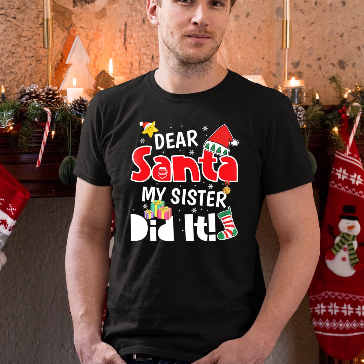 Be the first to review “Dear Santa My Sister Did It Santa Hat Christmas Stocking Gifts T-Shirt”