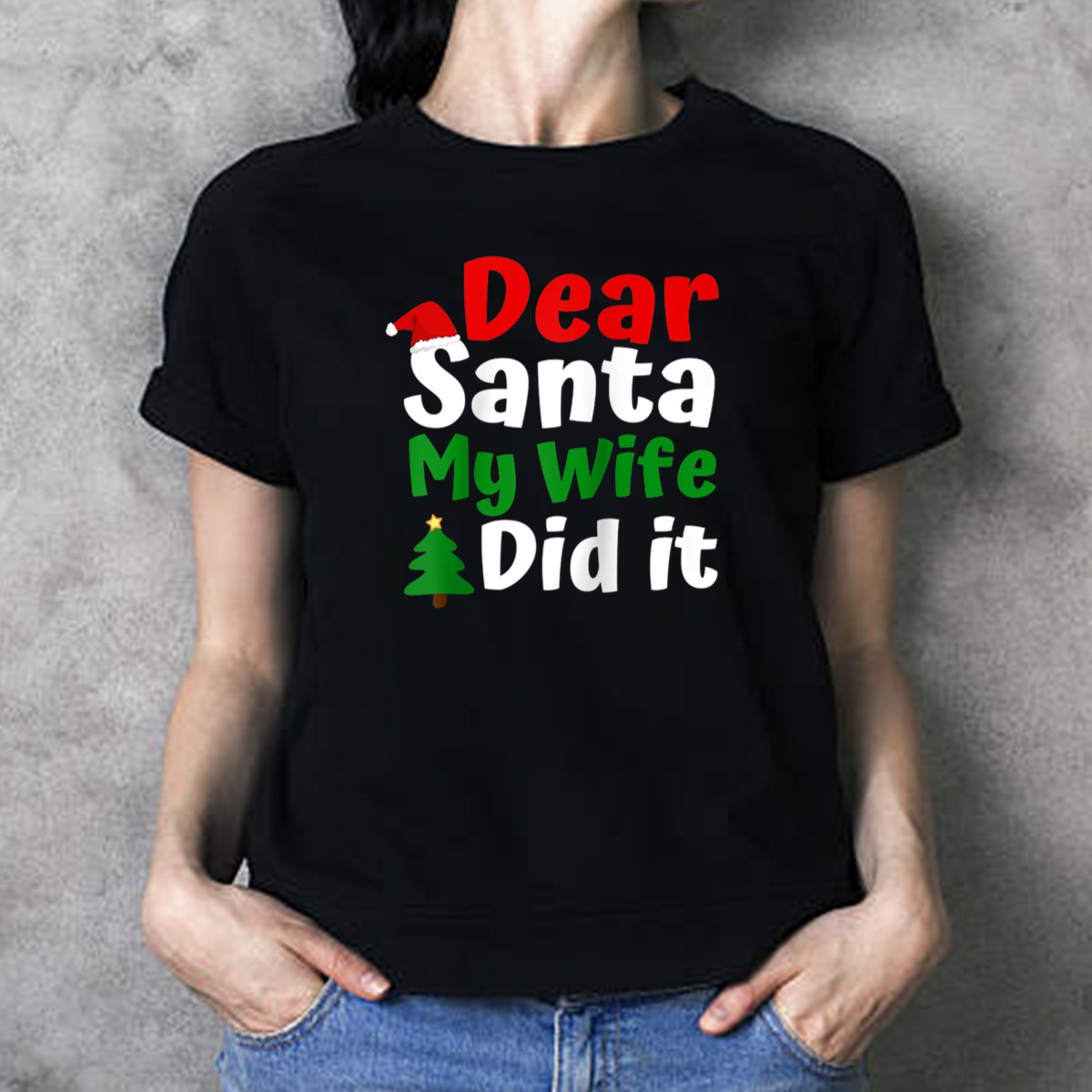 Get into the festive spirit with our “Dear Santa My Wife Did It” Christmas Tree Hat T-Shirt, perfect for fun-loving couples who enjoy spreading holiday cheer. This charming design is ideal for casual wear, themed events, or just lounging around the house during the holiday season. Made with love in the USA, this shirt is not only a great conversation starter but also a cozy addition to your winter wardrobe.