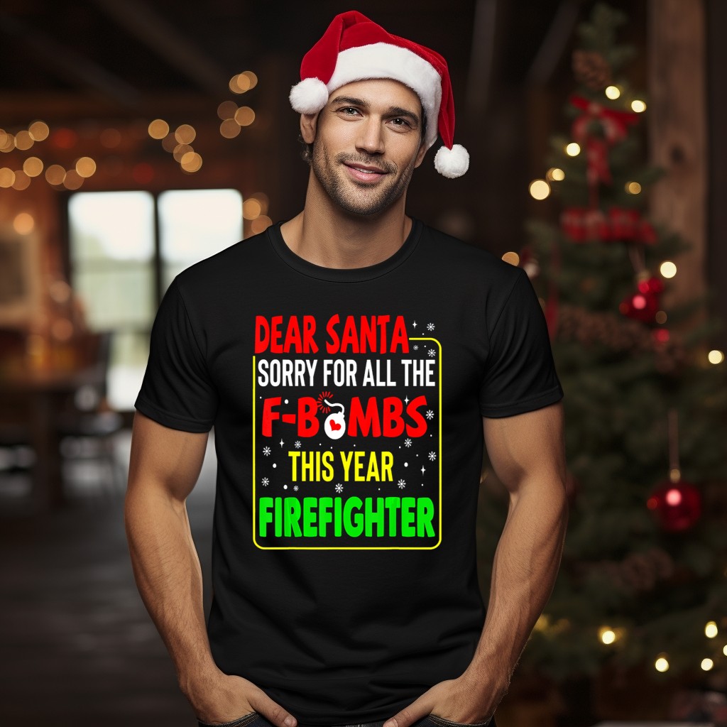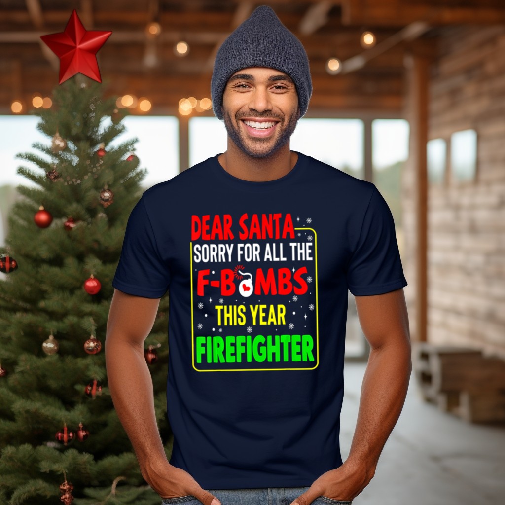 Get ready to spread some festive cheer with our “Dear Santa Sorry For All The F Bombs This Year” Firefighter Christmas T-Shirt! Perfect for firefighters, their families, or anyone with a cheeky sense of humor, this shirt is ideal for casual wear, themed events, or simply lounging around during the holiday season. The fan-made design, printed in the USA, adds a unique touch that sets it apart from the rest, making it a great conversation starter at any gathering.