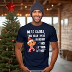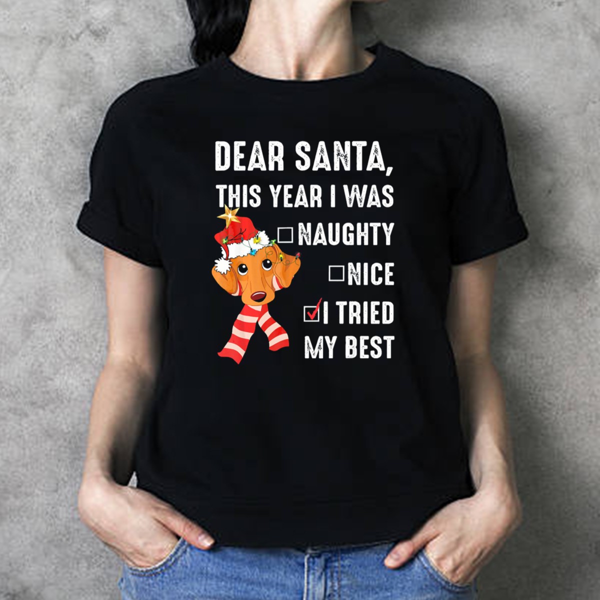 Get ready to spread some holiday cheer with our “Dear Santa This Year I Was Naughty Nice I Tried My Best” Dachshund Christmas T-Shirt! Perfect for dog lovers and festive spirits alike, this fan-made design captures the whimsical charm of the season. Ideal for casual gatherings, themed events, or just lounging around the house, this shirt is a delightful addition to your wardrobe that showcases your love for both dachshunds and the holiday season.