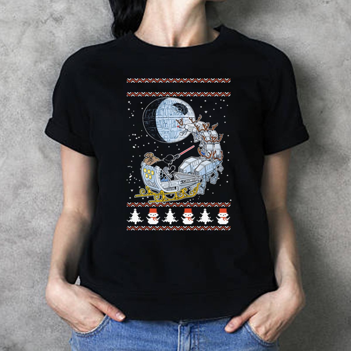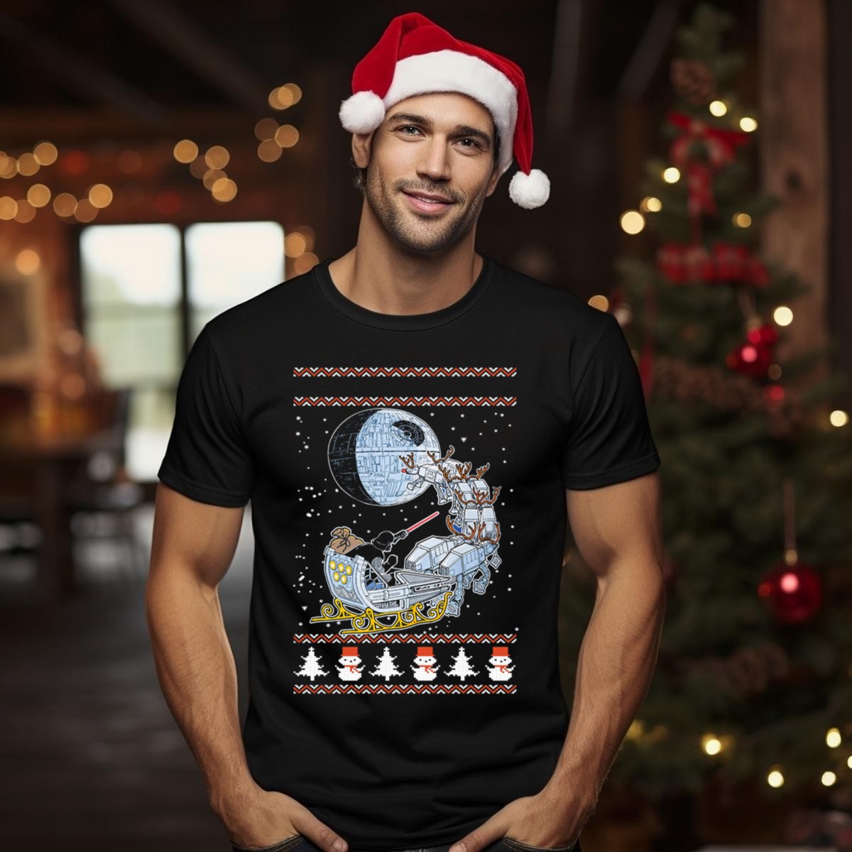 Celebrate the holiday season in a galaxy far, far away with our Death Star Christmas Night T-Shirt featuring Darth Vader on a sleigh pulled by AT-AT reindeer! Perfect for fans of all ages, this fun and festive shirt is ideal for casual gatherings, themed events, or just spreading cheer during the holidays. Made with a fan-made design printed in the USA, it’s a unique addition to any Star Wars enthusiast’s wardrobe.