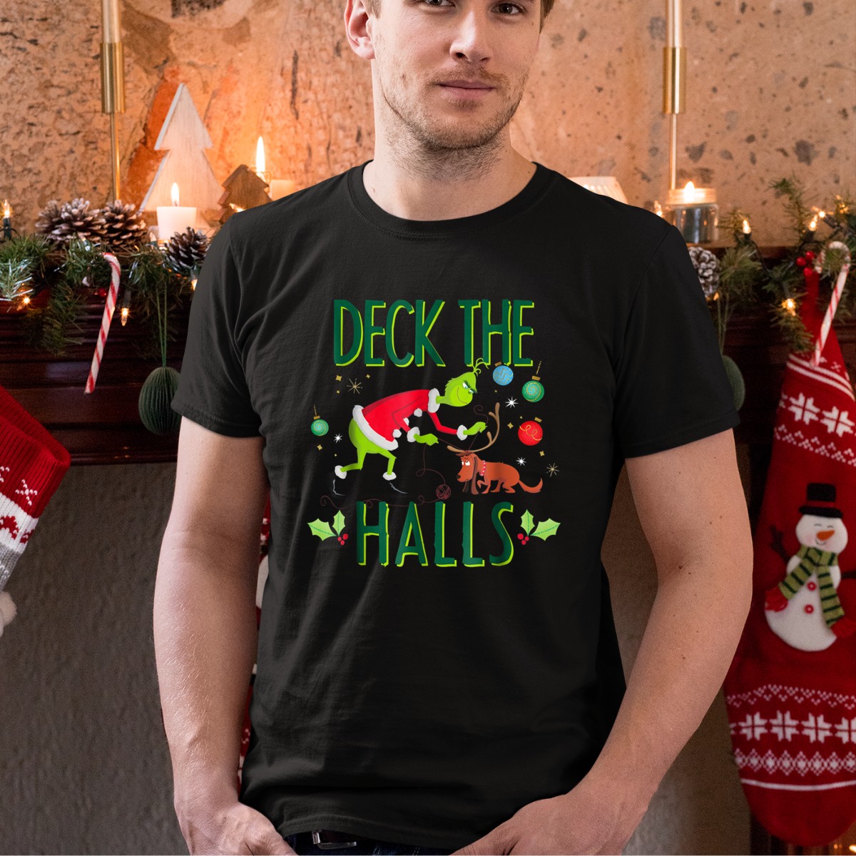 Be the first to review “Deck The Halls Grinch In Santa Outfit With Max And Christmas T-Shirt”