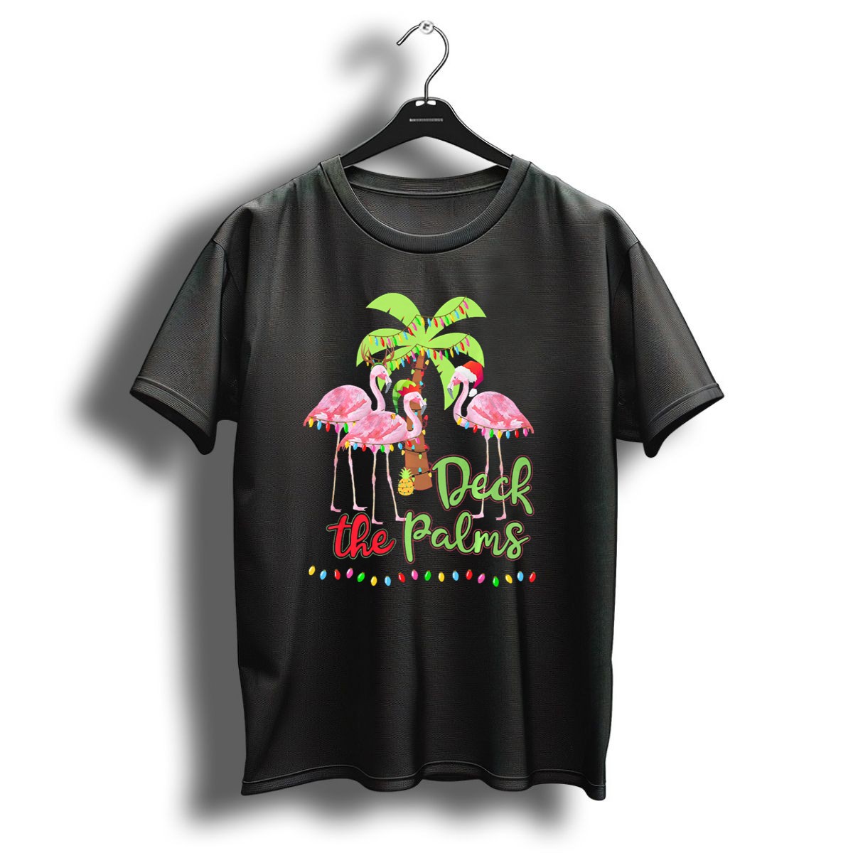 Be the first to review “Deck The Palms Flamingo Christmas Lights Tropical Holiday T-Shirt”