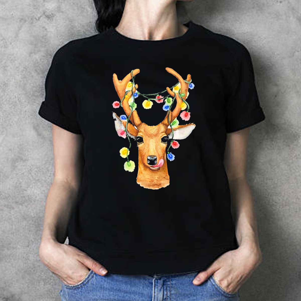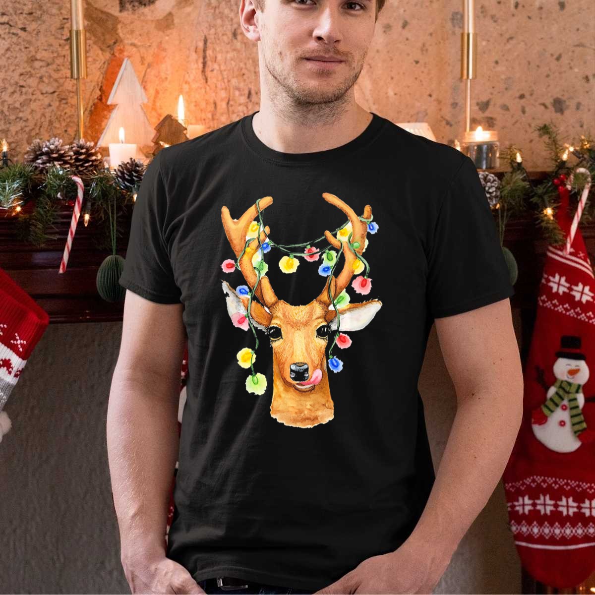 Be the first to review “Deer Reindeer Christmas Light Humor String Multicolor Holiday Antlers T Shirt”