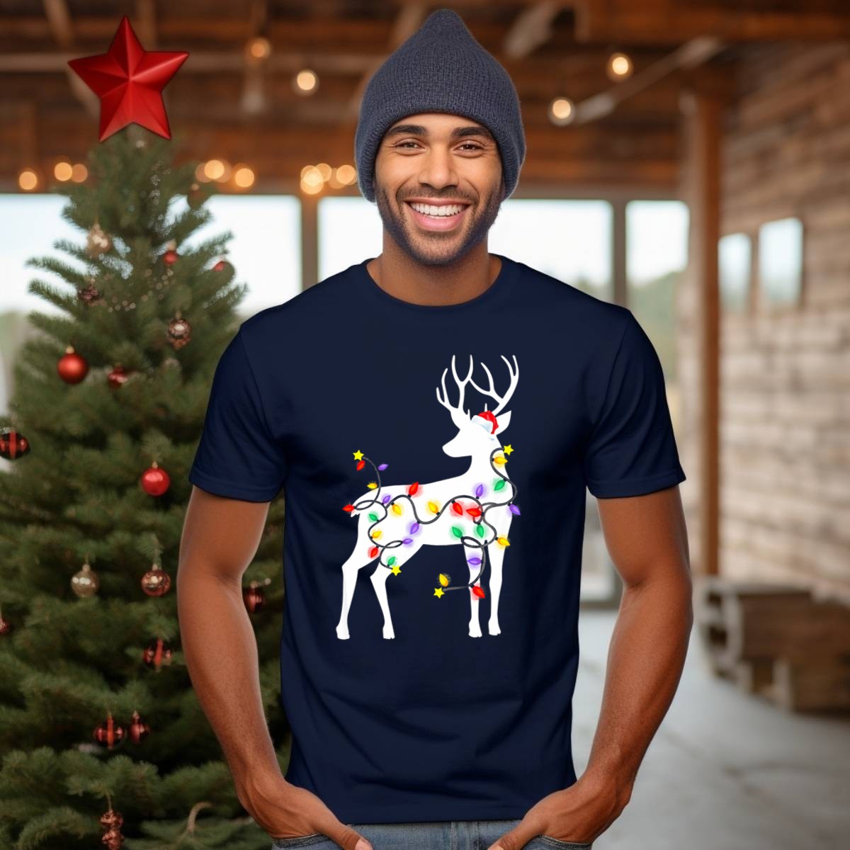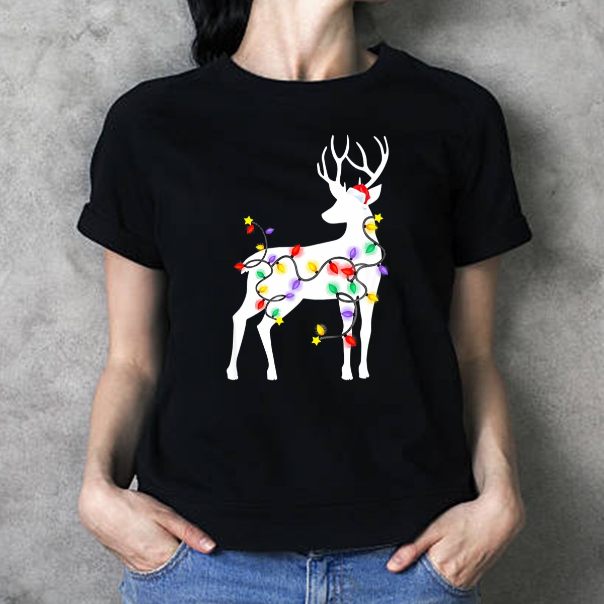 Be the first to review “Deer Reindeer Christmas Lights Decorations Santa Hat T Shirt”