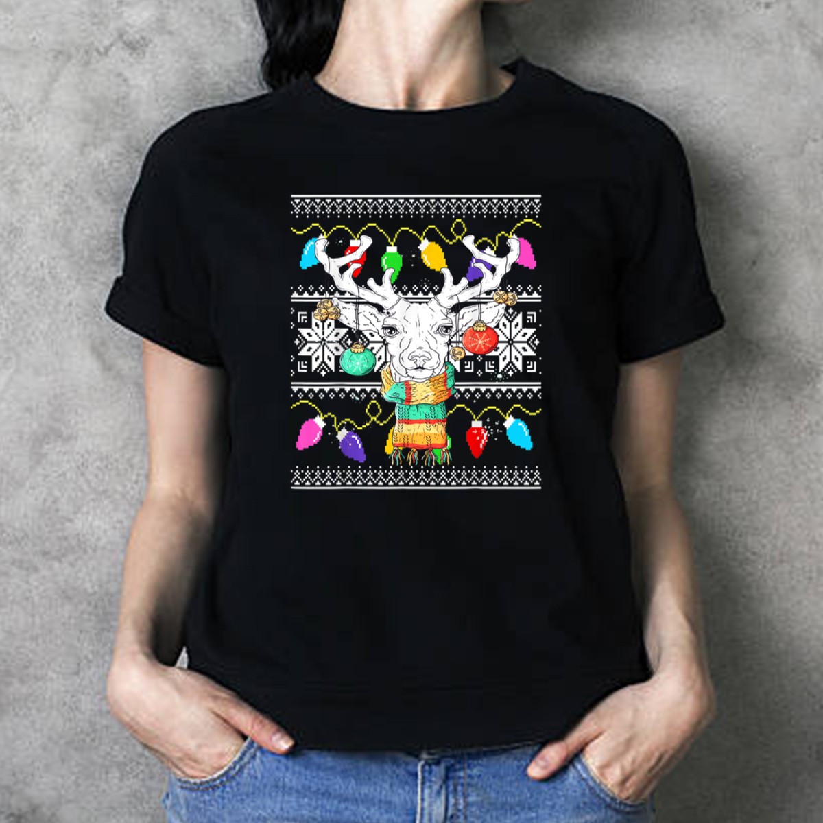 Embrace the festive spirit with our Deer Ugly Christmas Sweater Lights Santa Hat Ornaments T-Shirt! Perfect for holiday gatherings, themed events, or just spreading cheer during the season, this shirt is designed for those who love to celebrate with style. Featuring a playful and eye-catching graphic, this fan-made design will make you the center of attention at any casual occasion. Crafted with comfort in mind, this shirt is ideal for all-season wear, ensuring you stay cozy while showing off your holiday spirit.