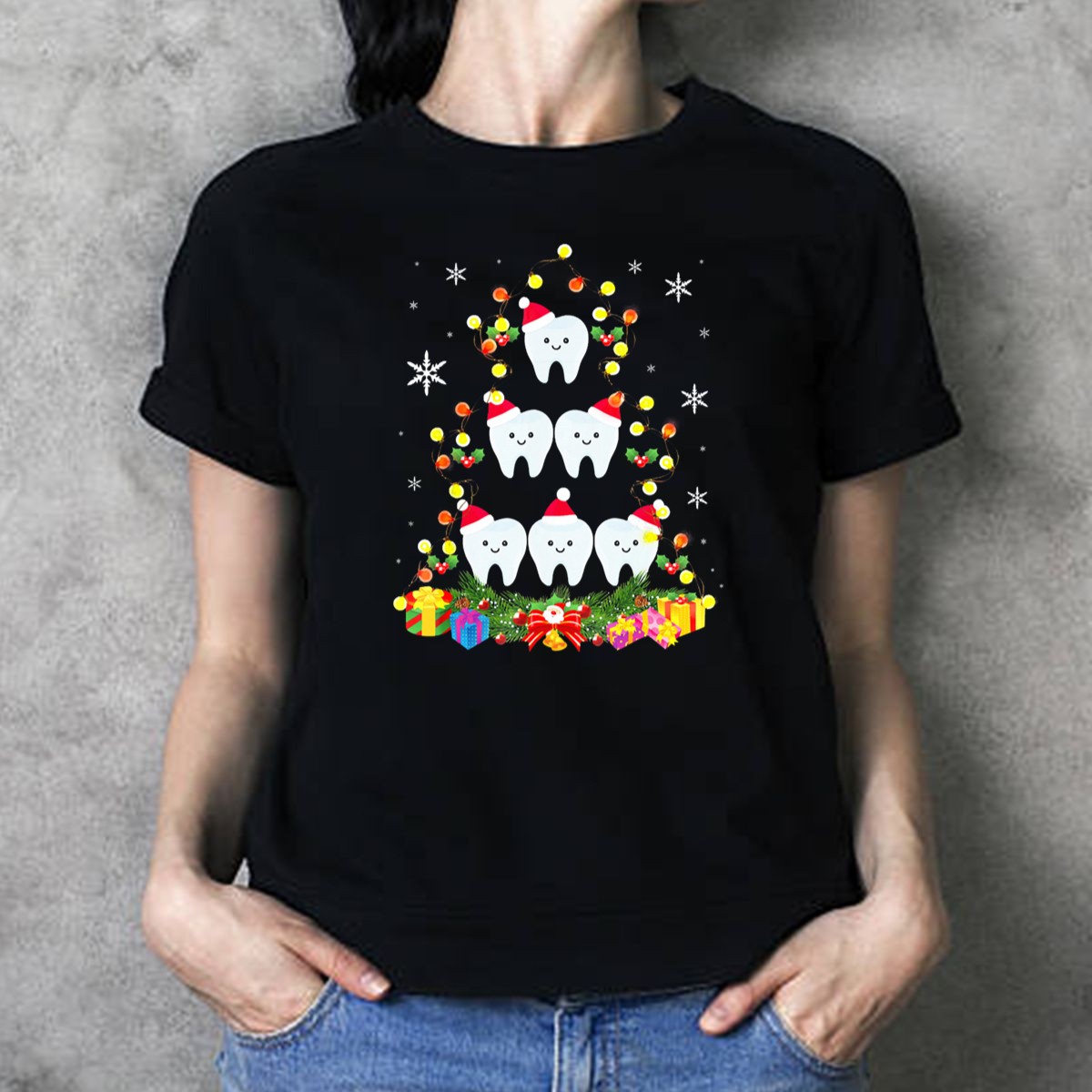 Celebrate the holiday season with our fun and festive Dental Christmas Tree T-Shirt, designed for dental professionals and enthusiasts alike! This unique graphic tee features a cheerful Christmas tree adorned with lighted tooth ornaments and delightful gifts, making it the perfect choice for casual wear, themed events, or daily outings during the holidays. Crafted for comfort and style, it’s a must-have addition to your festive wardrobe.