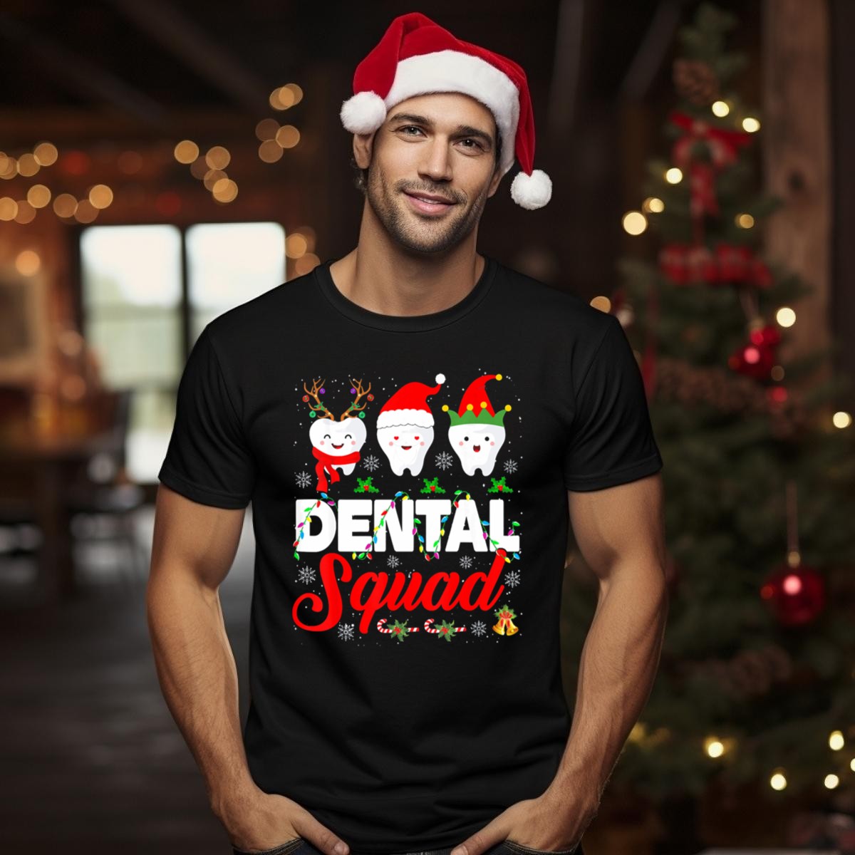 Show off your love for dentistry and spread some holiday cheer with our Dental Squad Funny Hygienist Dentist Love Christmas Themed Tooth Characters T-Shirt! This delightful tee is perfect for dental professionals and enthusiasts alike, making it an ideal choice for casual outings, themed events, or just spreading smiles during the festive season. With its fun and playful design, this shirt is sure to be a conversation starter, bringing a touch of humor to your everyday wear.