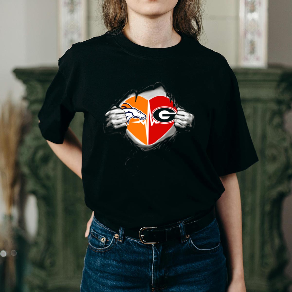 Be the first to review “Denver Broncos Georgia Bulldogs Heart Logos T Shirt”