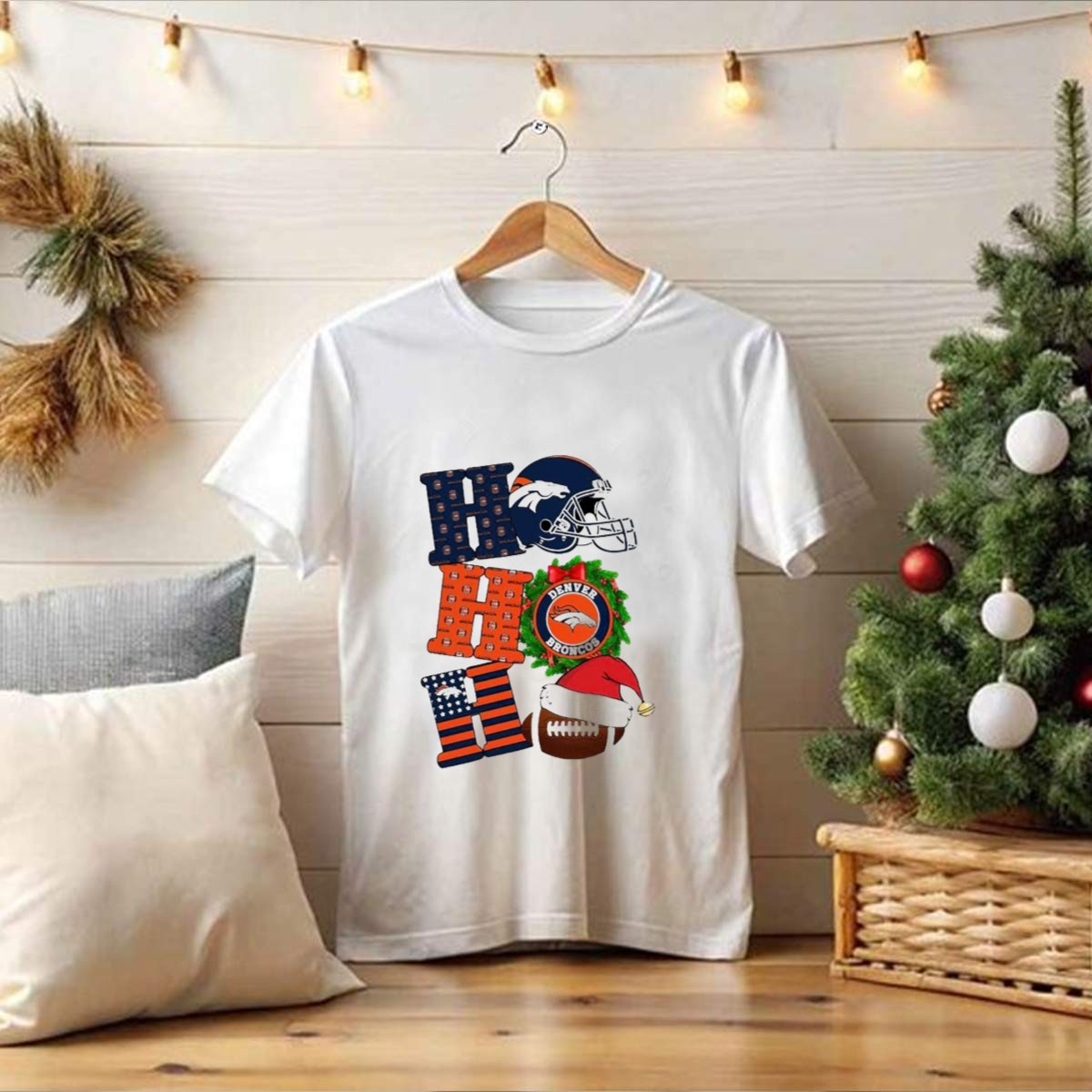 Be the first to review “Denver Broncos Ho Ho Ho Merry Christmas Football Helmet Wreath Santa Hat Holiday T Shirt”