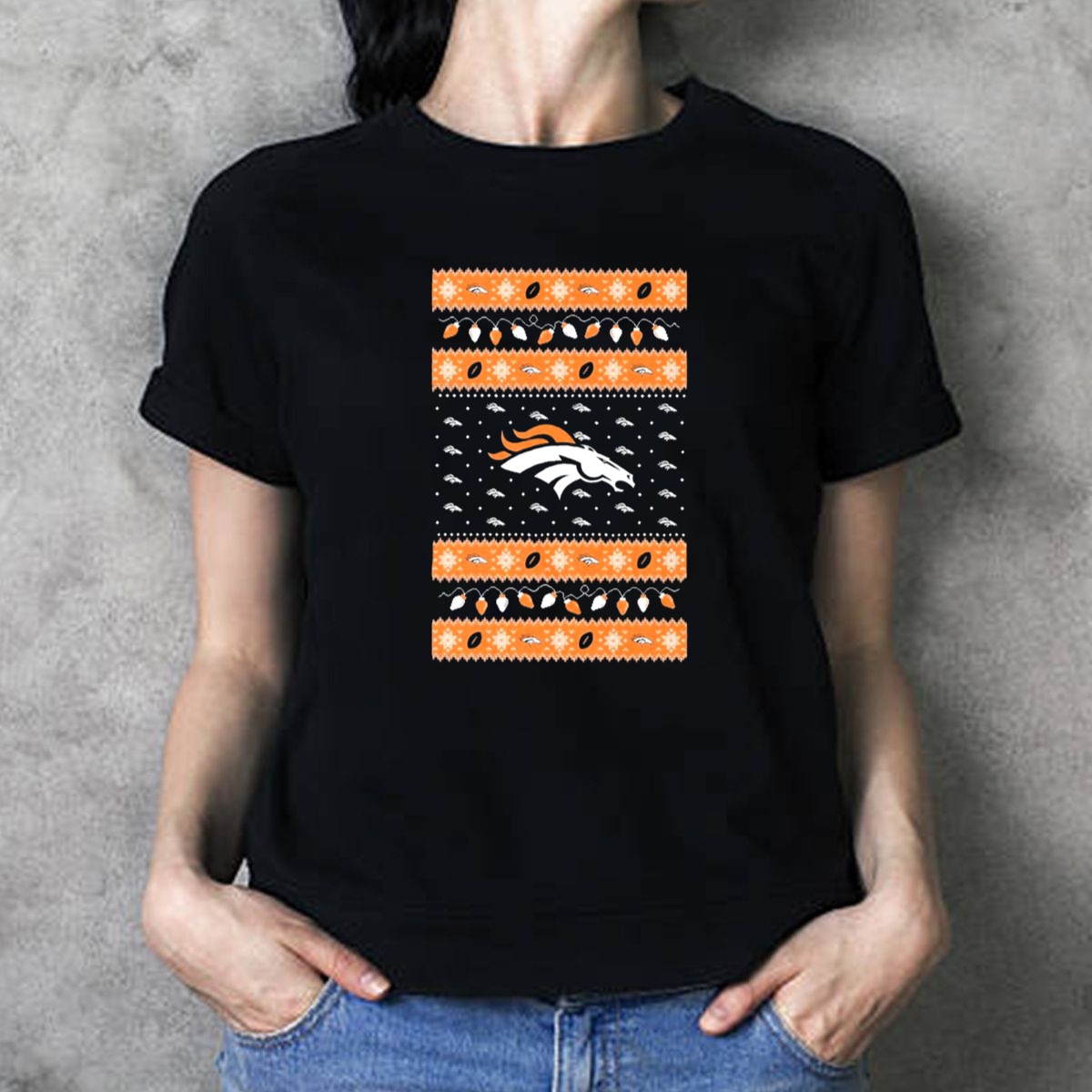 Show your team spirit this holiday season with our Denver Broncos NFL Ugly Sweater Holiday Lights Christmas T-Shirt! Perfect for die-hard fans and those who love to celebrate in style, this tee combines festive cheer with your passion for the Broncos. Whether you’re attending a game, a holiday party, or lounging at home, this shirt is sure to turn heads and spark conversations. Made in the USA, it features a unique fan-made design that brings a playful twist to your casual wear.