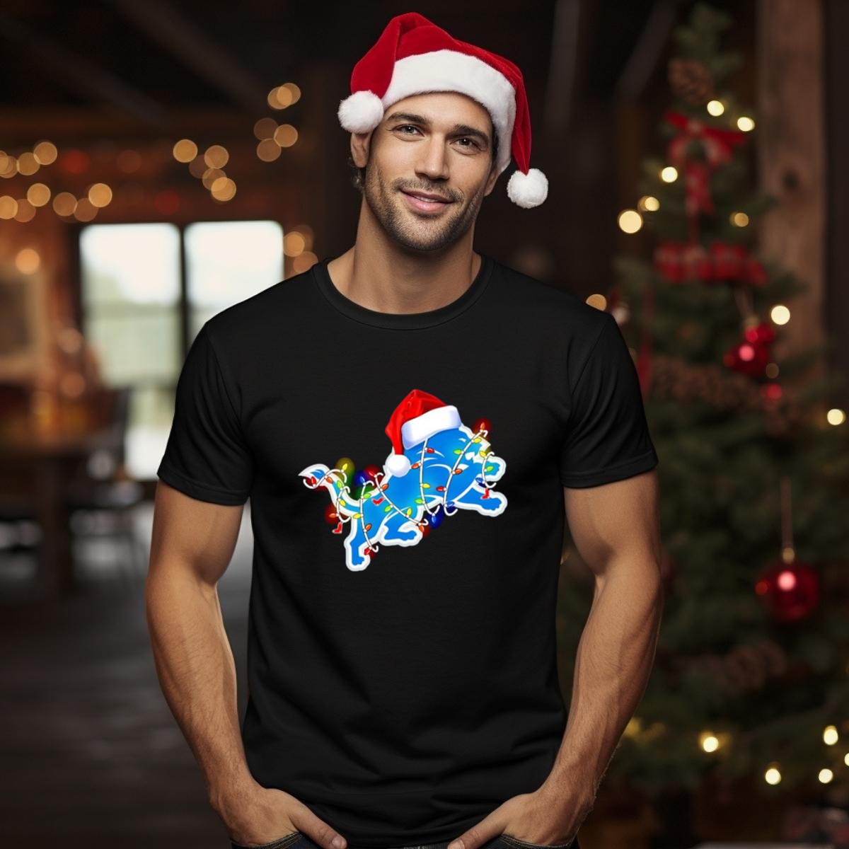 Celebrate the holiday season in style with our Detroit Lions Christmas Lights Santa Hat Holiday Football T-Shirt! Perfect for die-hard fans and festive gatherings, this shirt combines your love for football with the cheerful spirit of Christmas. Whether you’re attending a holiday party, cheering on your team, or simply enjoying a cozy day at home, this unique fan-made design, printed right here in the USA, will keep you looking festive and spirited all season long.