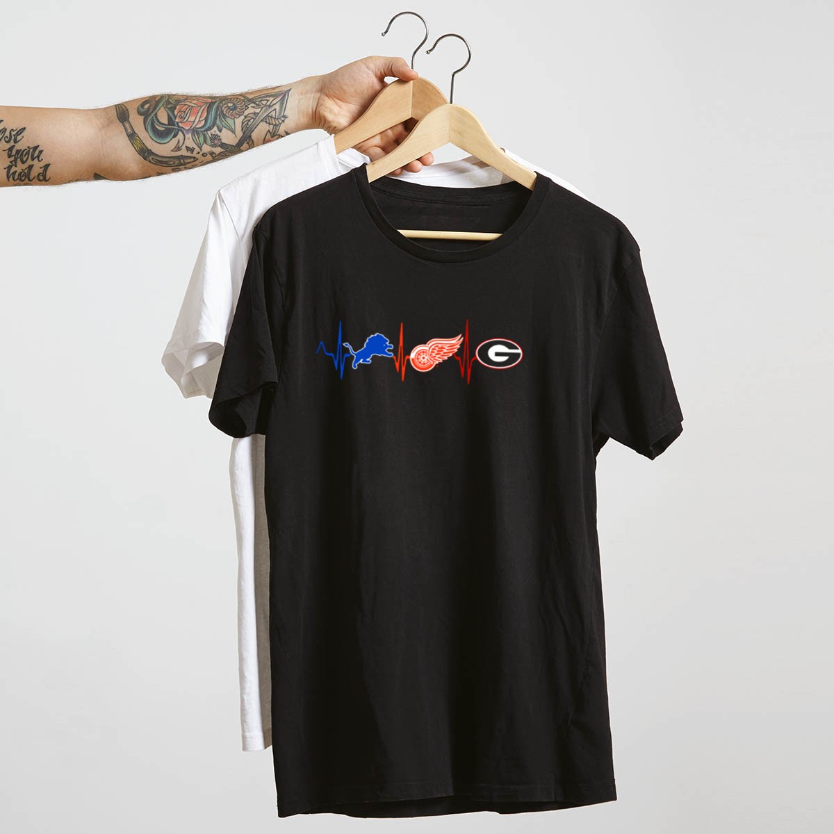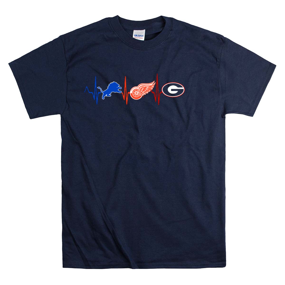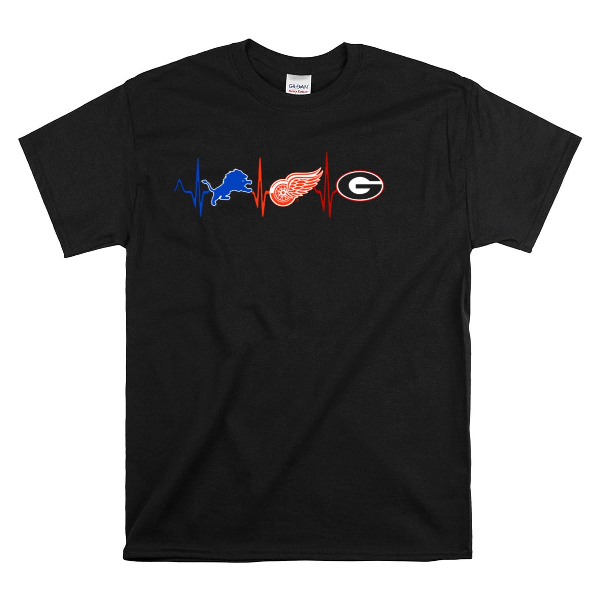Show off your team spirit with our Detroit Lions Red Wings Georgia Bulldogs Heartbeat T-Shirt! This fan-made design, printed in the USA, perfectly captures the passion of sports enthusiasts. Ideal for casual outings, themed events, or everyday wear, this shirt will keep you comfortable while you cheer for your favorite teams. Its classic fit and breathable material make it a must-have for all seasons, ensuring you always feel great while representing your pride.
